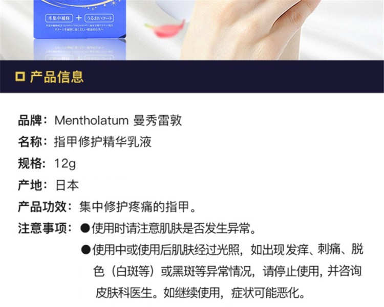【日本直邮】ROHTO 乐敦 曼秀雷敦 指甲指缘修护精华乳液 12g