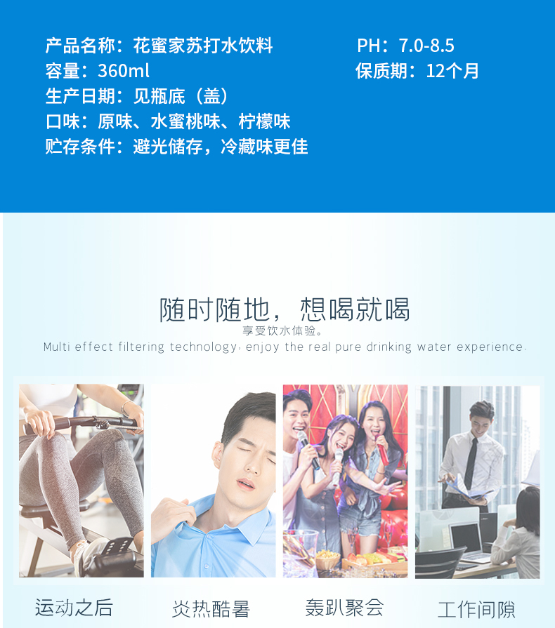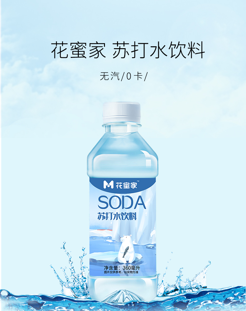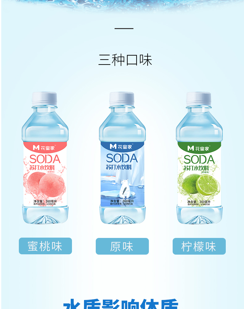 花蜜家苏打水 整箱碱性水天然水饮料矿泉无糖无气弱碱蜜桃味/柠檬味/原味 360ml/瓶x24瓶