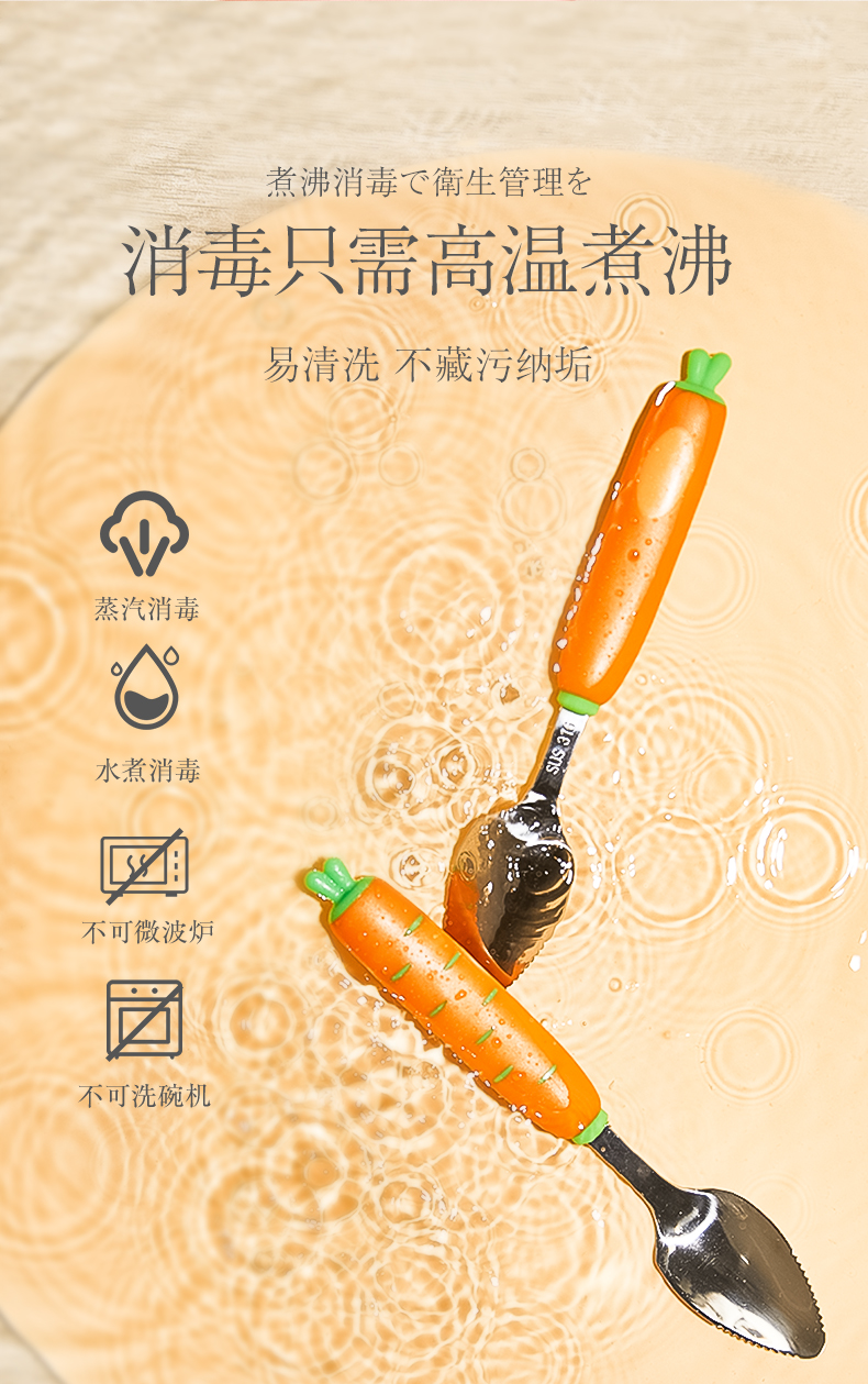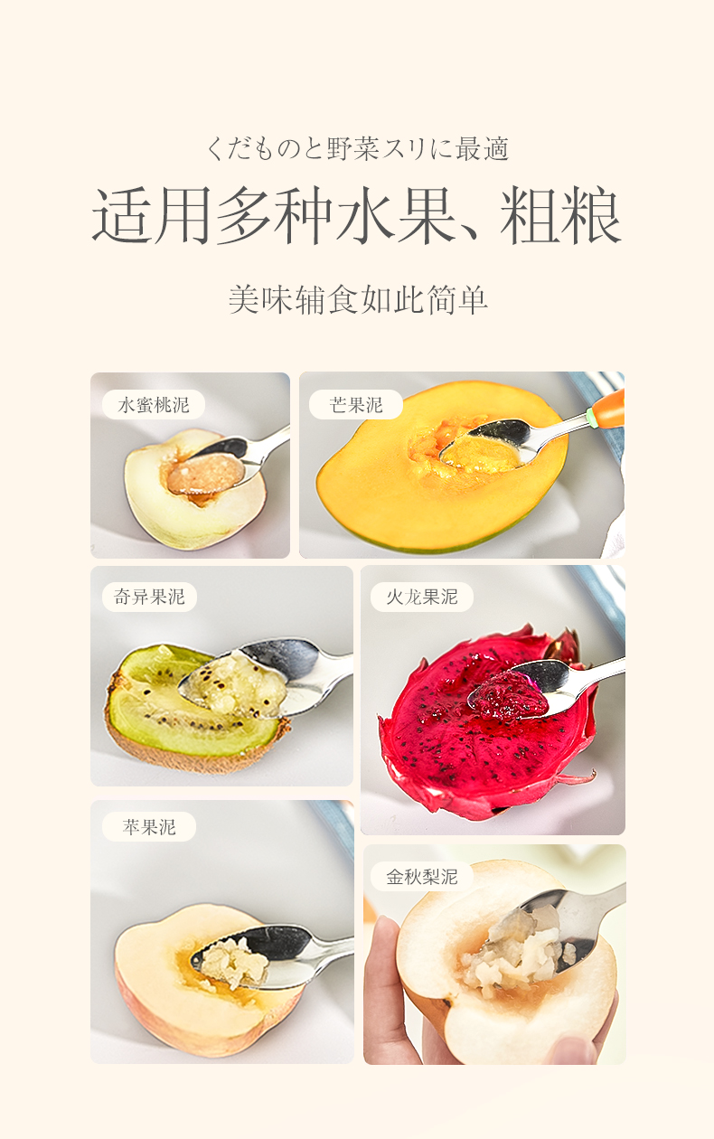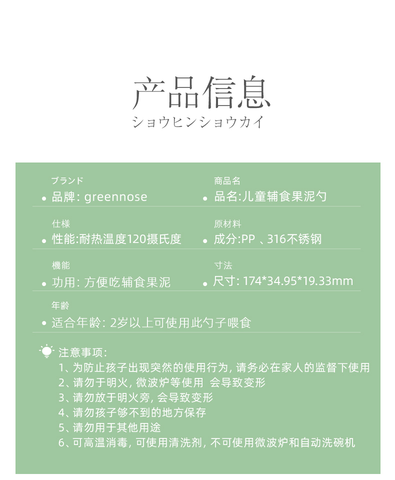 日本Greennose绿鼻子宝宝辅食专用不锈钢研磨器挖泥勺