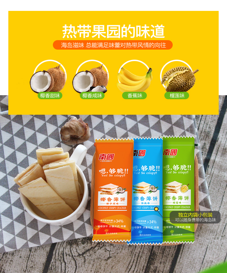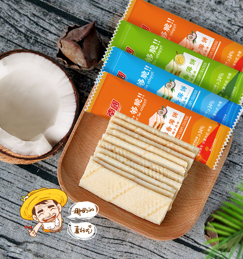 中国 南国 椰香薄饼187gX3盒装椰子味早餐休闲代餐怀旧饼干小吃