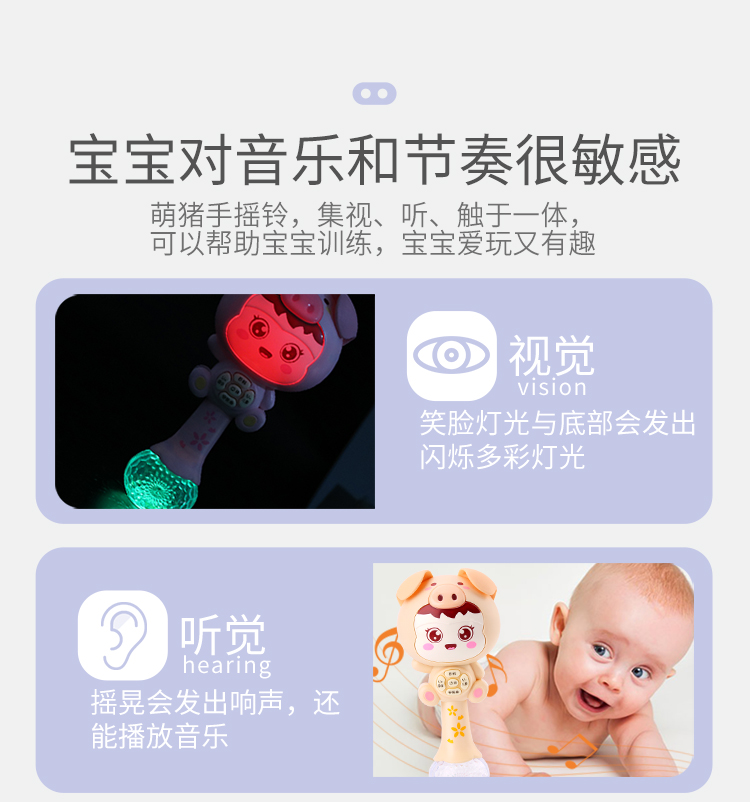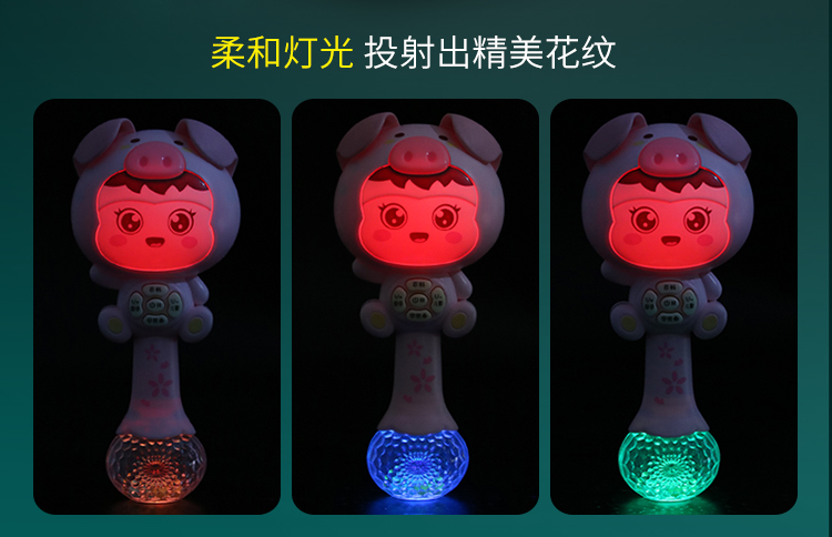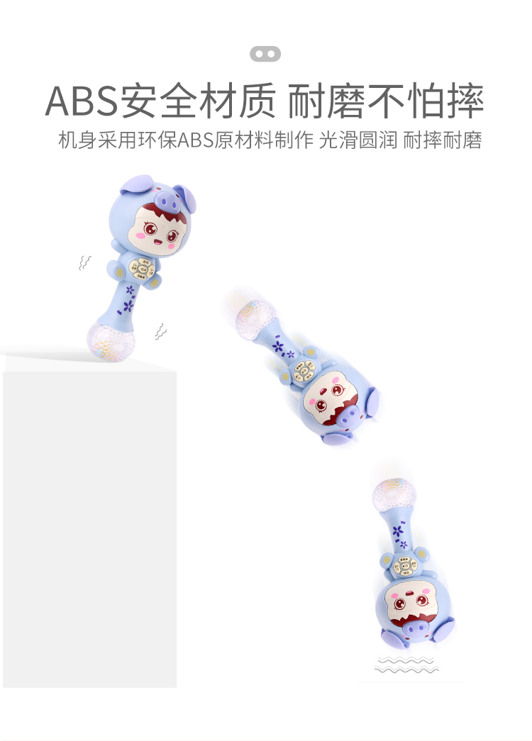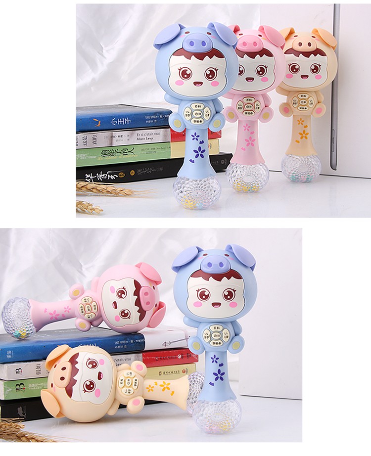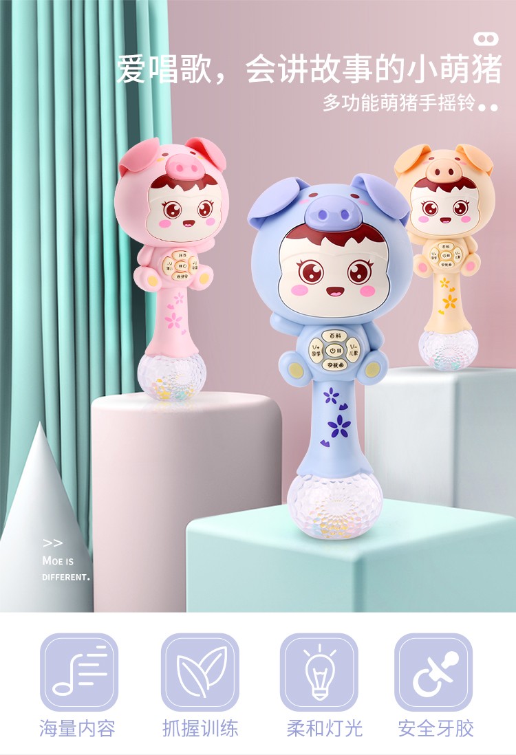 怀恩 爱唱歌讲故事多功能婴儿小猪萌摇铃 可啃咬新生儿宝宝抓握 蓝色