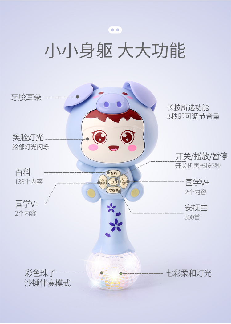 您所在的位置:首页 > 母婴用品  > 玩具 > 娃娃玩具  > 怀恩 爱唱歌讲故事多功能婴儿小猪萌摇铃 可啃咬新生儿宝宝抓握 蓝色
