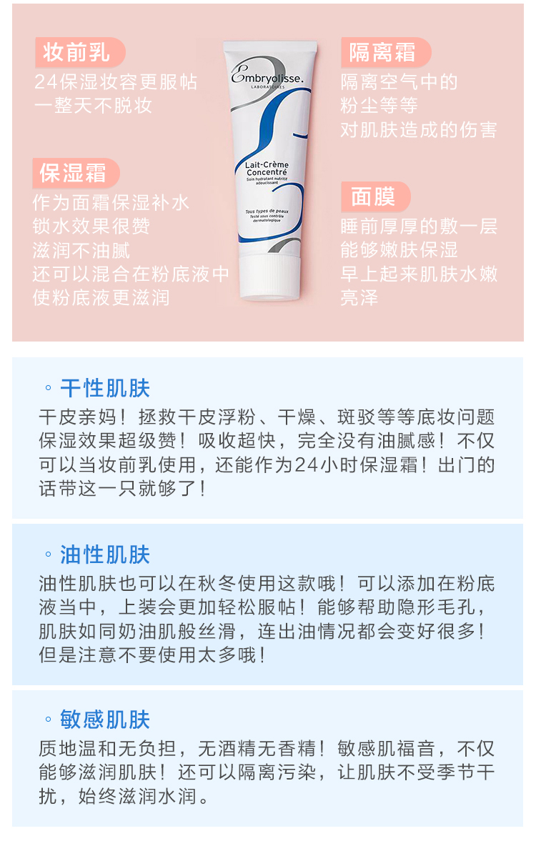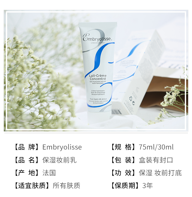 法国 EMBRYOLISSE 隔离霜保湿霜妆前乳打底乳 润肤乳液 蓝色款75ml