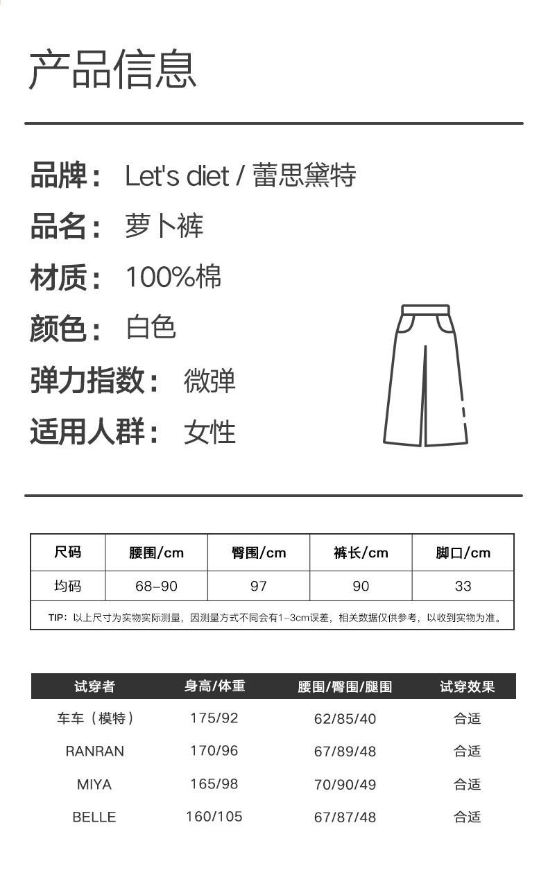 您所在的位置:首页 > 服饰内衣  > 女装 > 牛仔裤  > Let's diet 白色九分萝卜裤