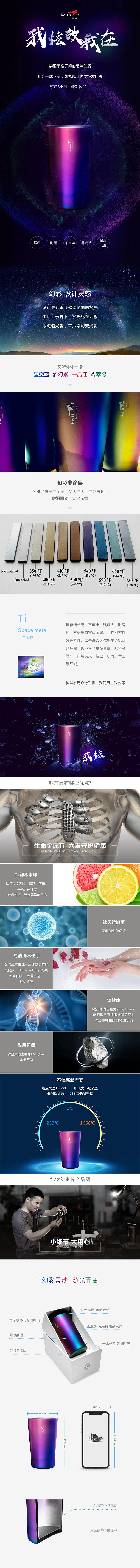 铠斯名钛 99.9%纯钛 幻彩杯 320ml水杯