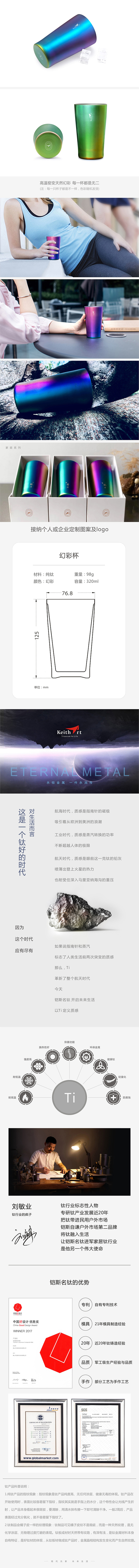 您所在的位置:首页 > 家居日用  > 水具酒具 > 杯具套装  > 铠斯名钛 99.9%纯钛 幻彩杯 320ml水杯