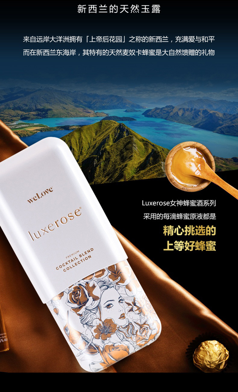 新西兰luxerose鸡尾酒玫瑰赫拉进口洋酒mojito女生聚会微醺蜂蜜酒100ml 赫拉 蜂蜜玫瑰
