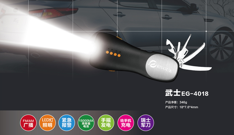 您所在的位置:首页 > 汽车用品  > 车载电器 > 运动智能  > 【授权商品】恩谷ENGUE 手摇多功能 工具组合 手电筒 移动电源功能 EG-4018