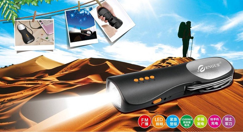 【授权商品】恩谷ENGUE 手摇多功能 工具组合 手电筒 移动电源功能 EG-4018