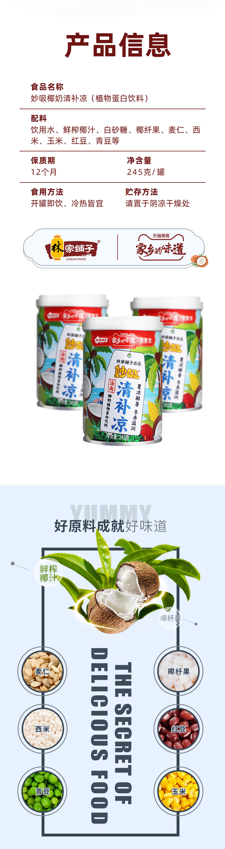 您所在的位置:首页 > 休闲食品  > 饮料冲调 > 冲饮谷物  > 【爆款:李佳琦推荐】林家铺子清补凉 椰奶西米露245g/罐