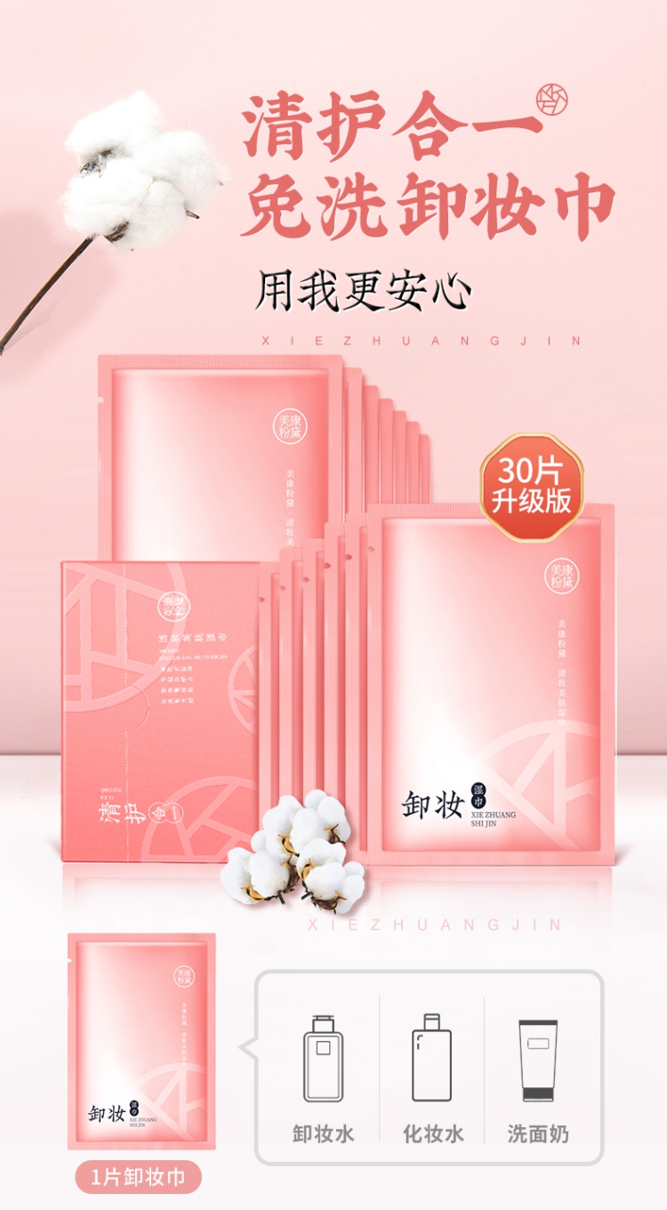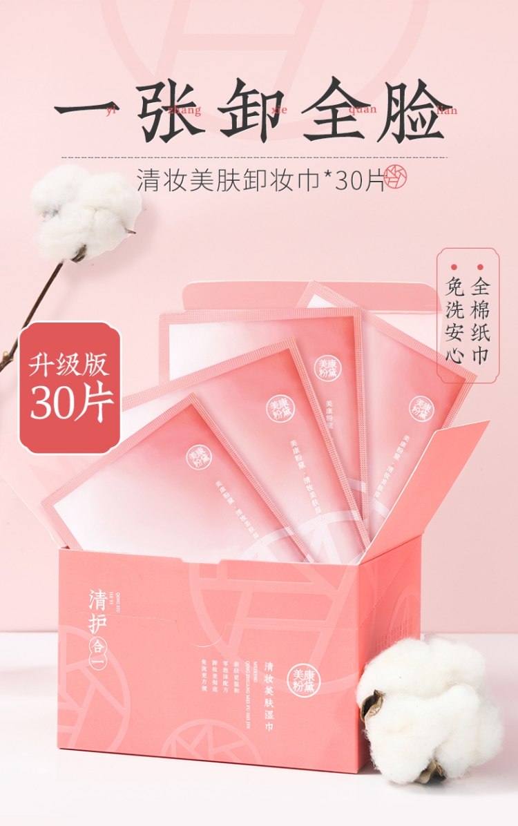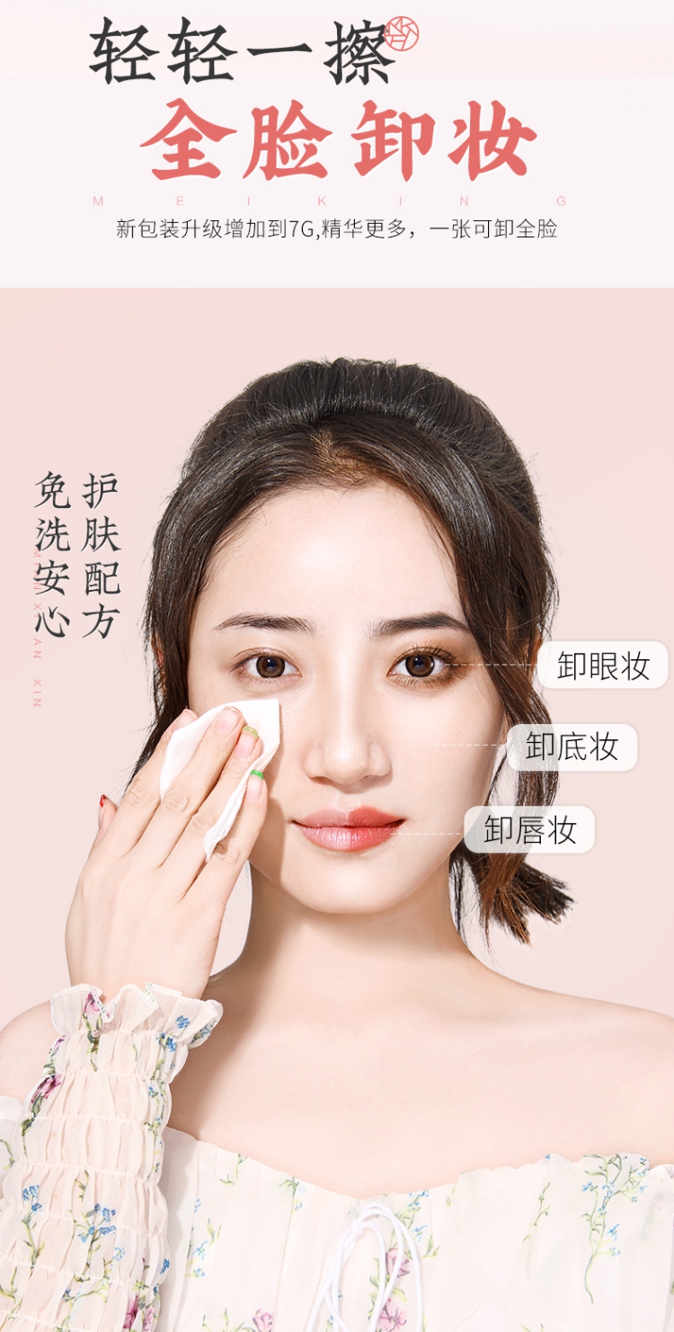 美康粉黛清妆美肤湿巾盒装7g*30片 眼妆唇妆脸部无刺激