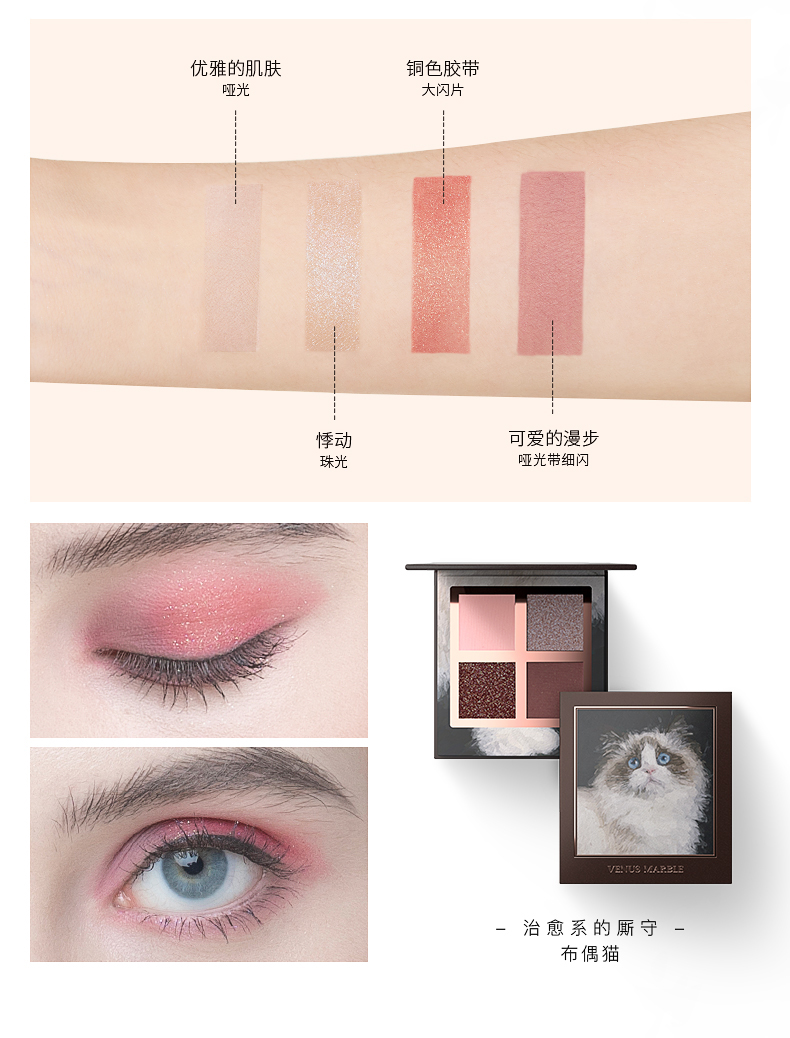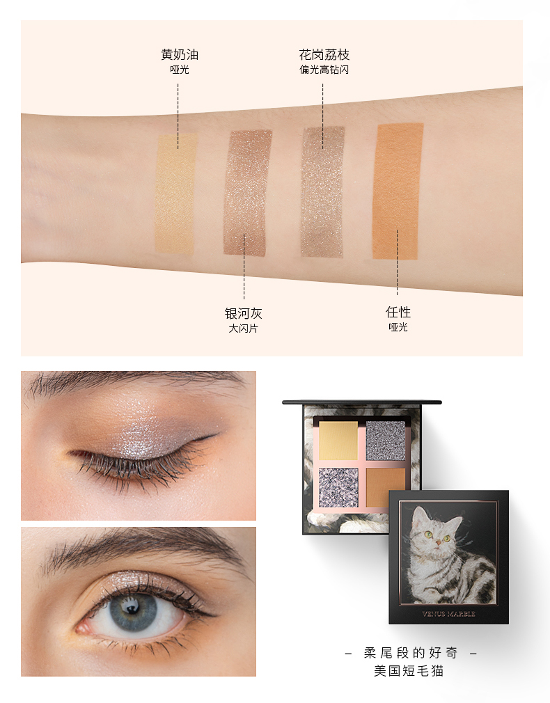 【买一赠一 颜色随机】VENUS MARBLE猫咪四色眼影盘 #精灵般的傲气 加拿大无毛猫