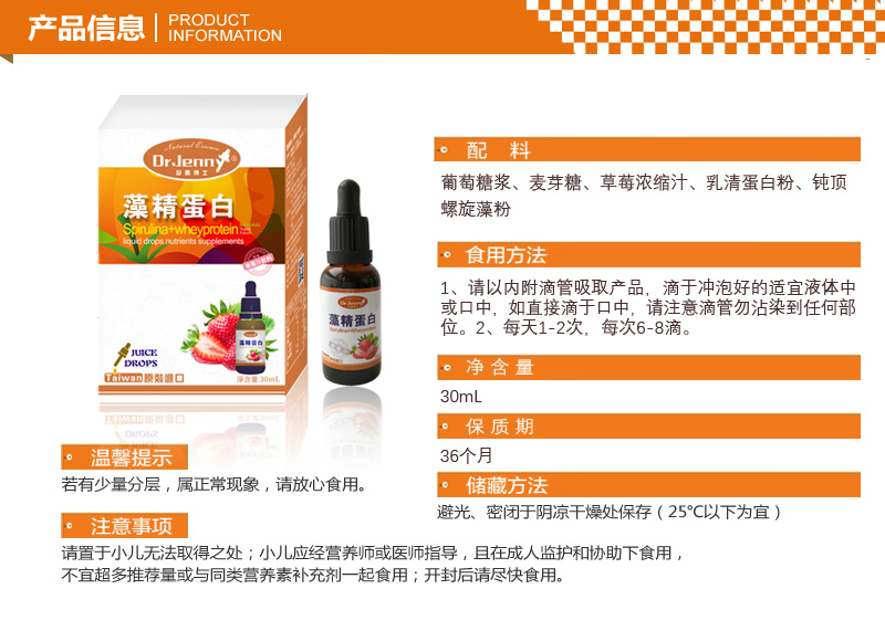 珍妮博士藻精蛋白台湾原装进口30ml/瓶