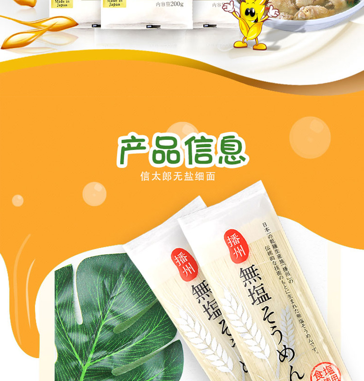 日本信太郎播州无盐细面200g/袋