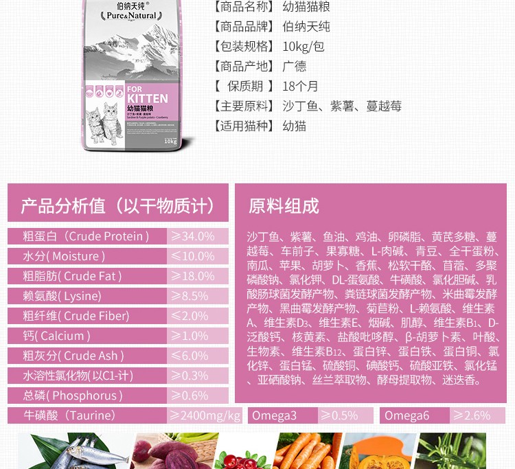 伯纳天纯幼猫猫粮10kg