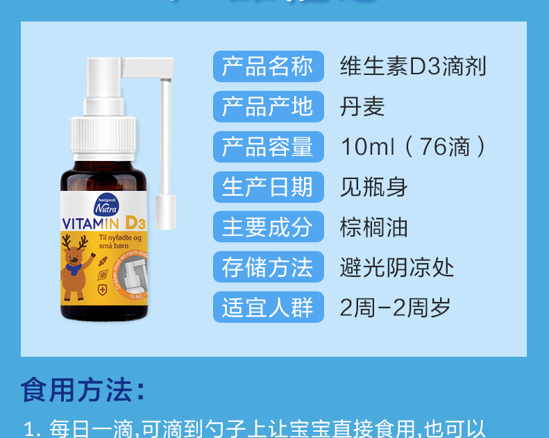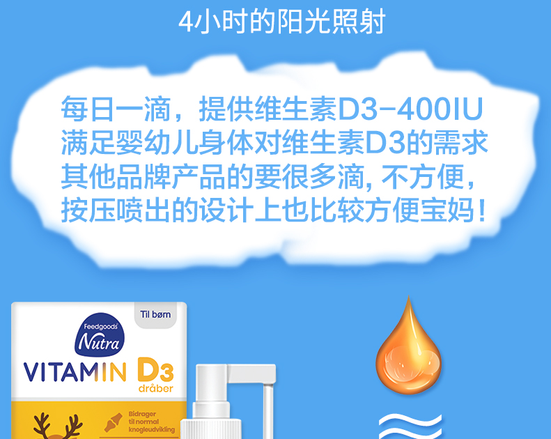 Feedgoods维生素d3滴剂婴儿儿童钙维生素D3新生儿营养