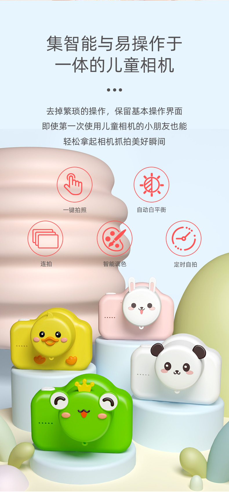 萌宝拍A1儿童双摄 mini相机 含32G内存卡 胡桃鸭