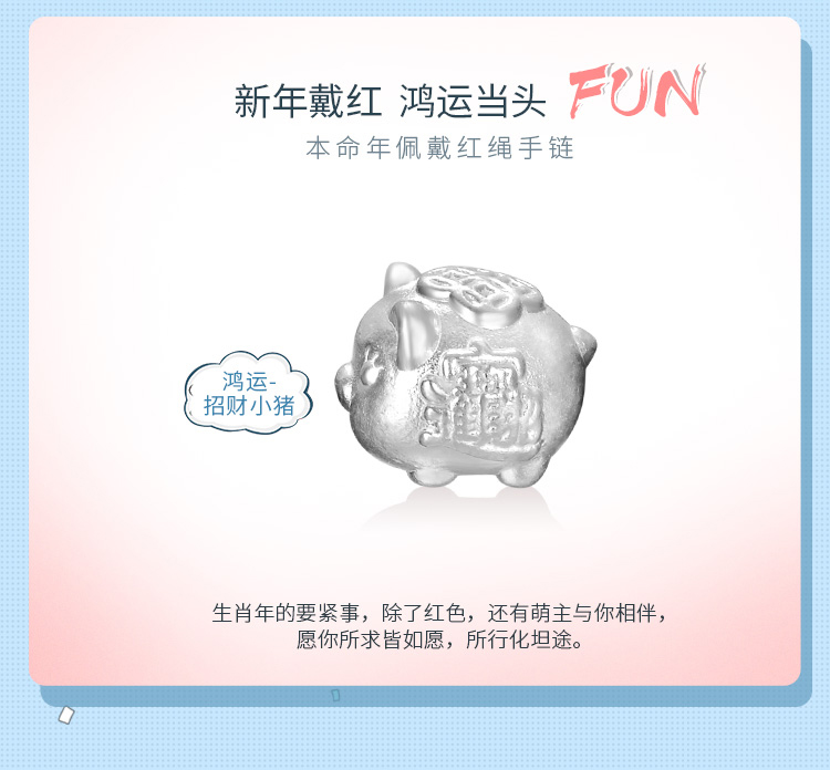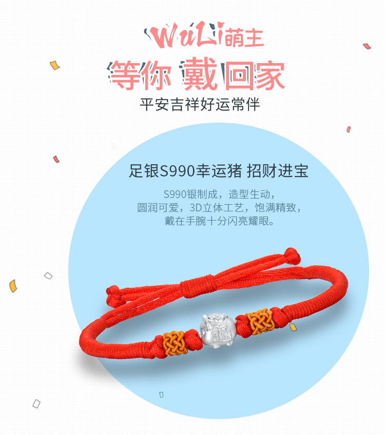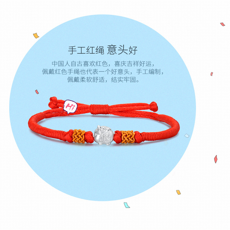 您所在的位置:首页 > 珠宝首饰  > 珠宝首饰 > 银饰  > 四福珠宝 S990足银小猪手链2019年本命年生肖猪红绳手链手串