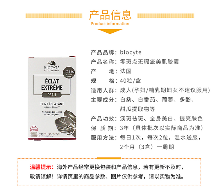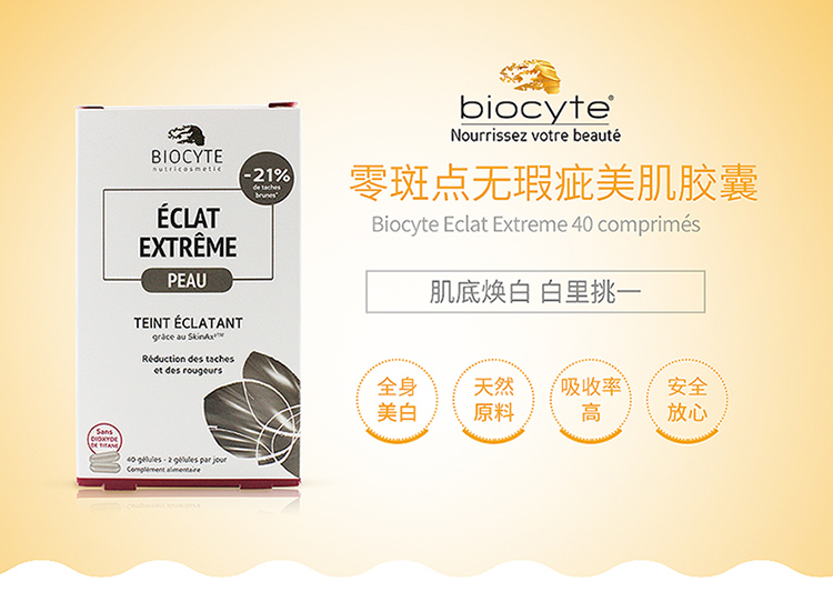 【荷兰直邮】Biocyte法国进口美白丸全身美白内服去黄淡斑提亮肤色40粒