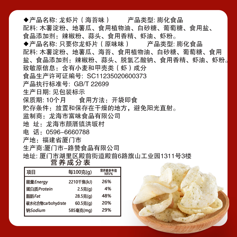 您所在的位置:首页 > 休闲食品  > 休闲食品 > 膨化食品  > 佬食仁只要你龙虾片原味&海苔味混合装 160g(8包)/箱
