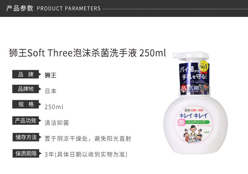 日本狮王Soft Three泡沫杀菌洗手液 250ml