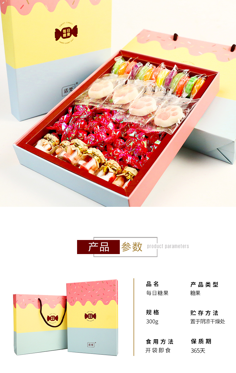 诺梵每日糖果礼盒装缤纷糖果组合节日生日礼物糖果300g/盒