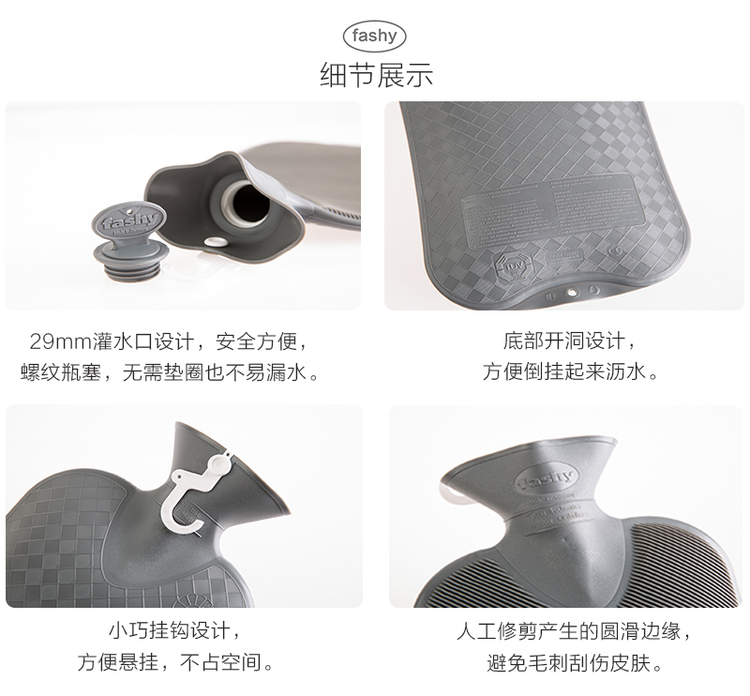 德国原产fashy注水防爆热水袋暖手宝暖水袋简洁菱纹