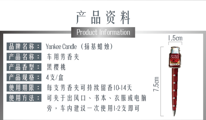 【授权商品】扬基汽车香氛芳香夹(4支装) - 黑樱桃(3g)