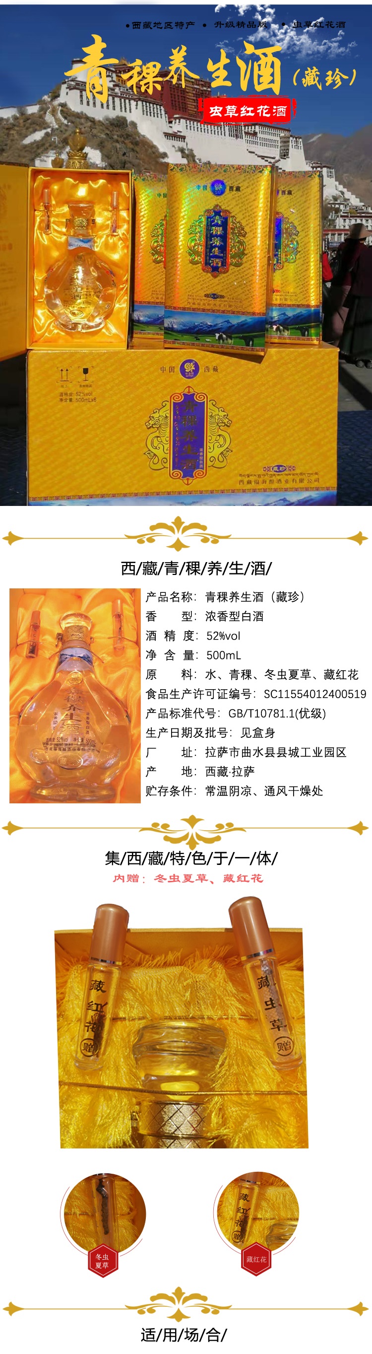 您所在的位置:首页 > 休闲食品  > 白酒 > 白酒  > 西藏福海醇青稞养生酒(藏珍)升级珍藏版 浓香型白酒 内赠冬虫夏草 藏红花500ML*6瓶/箱