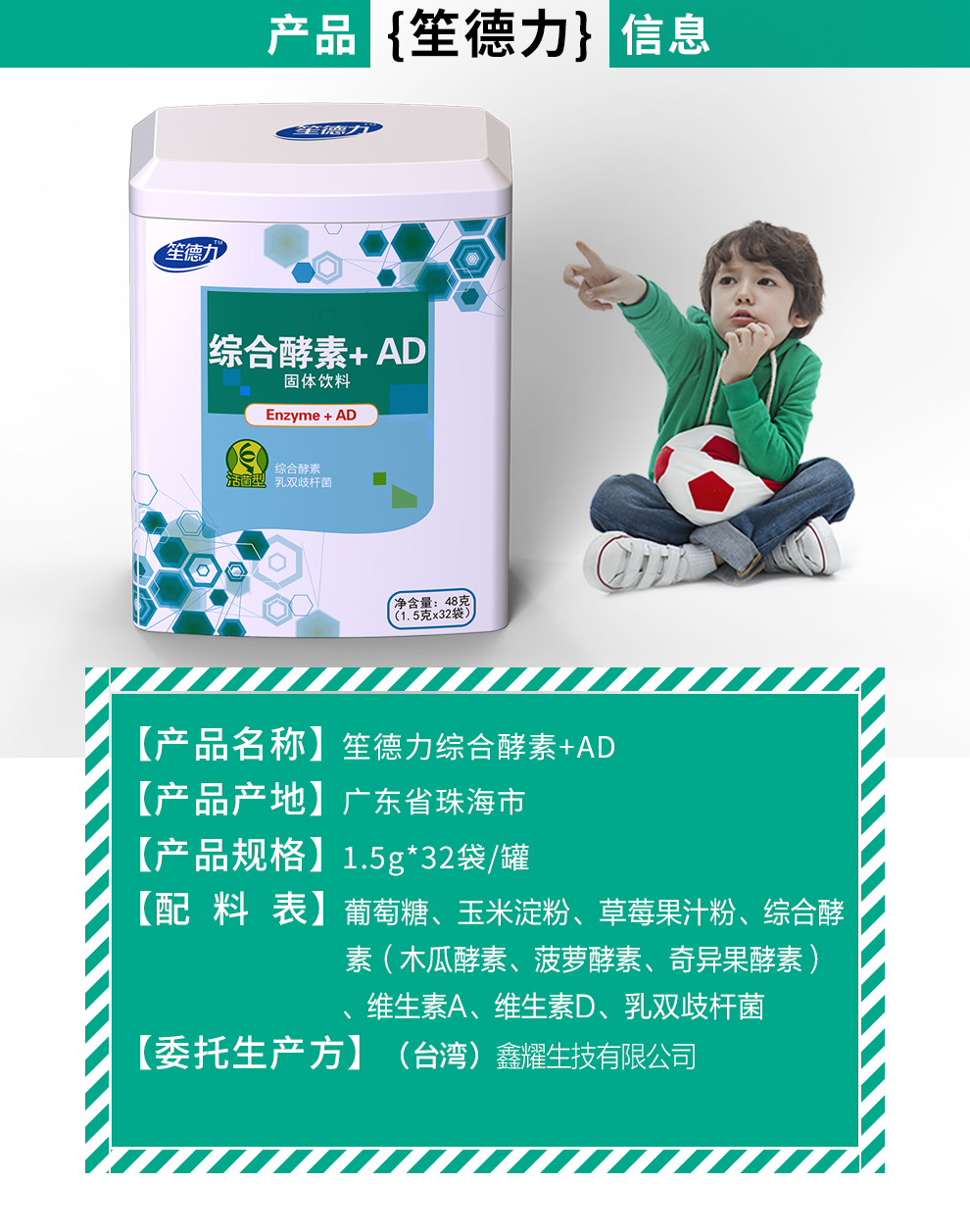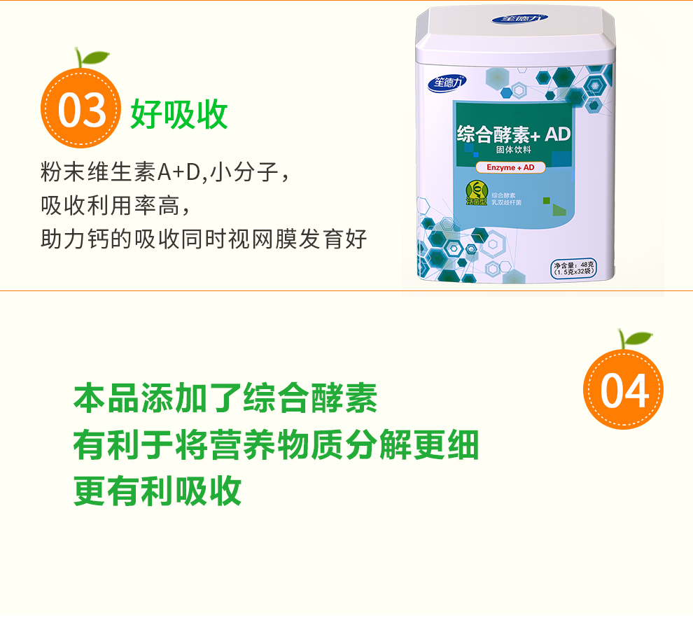 台湾进口原料笙德力综合酵素+AD 维生素A 维生素D 48g