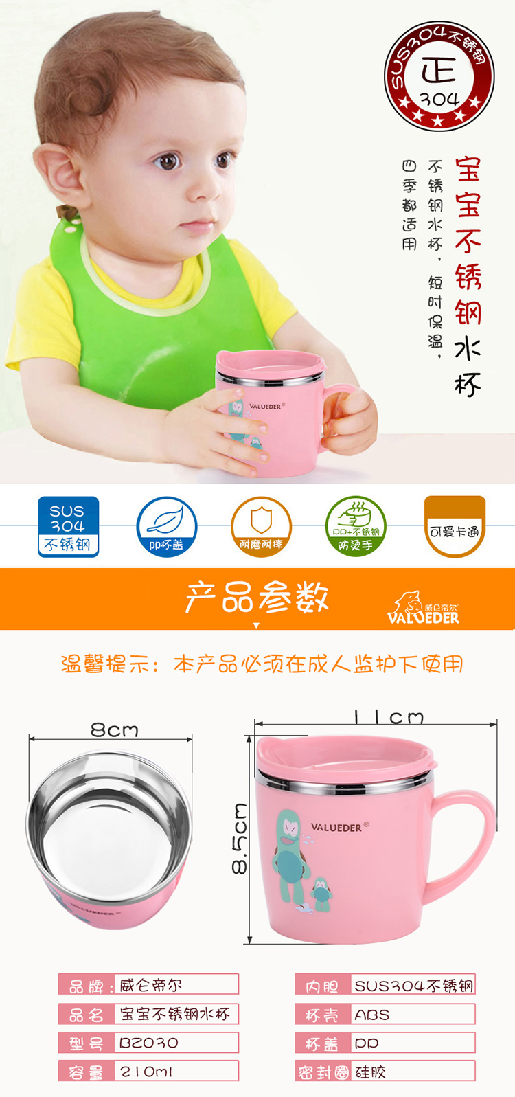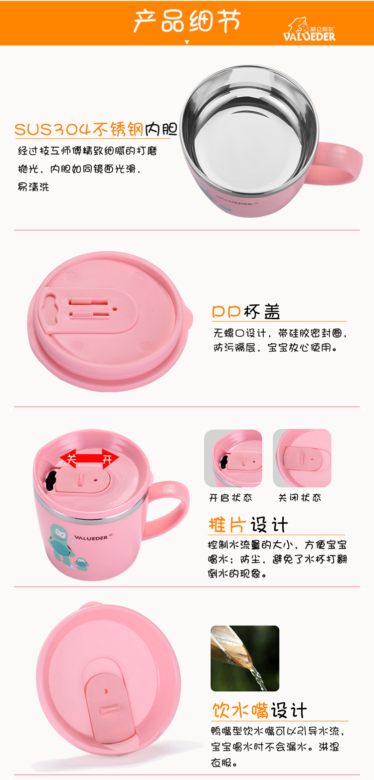 威仑帝尔儿童带手柄带盖保温学饮杯蓝色230ml