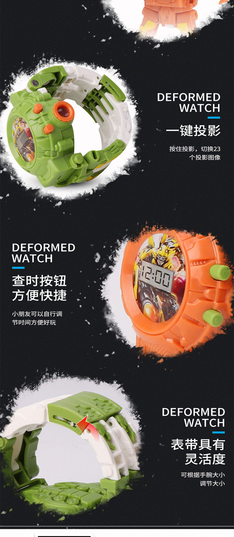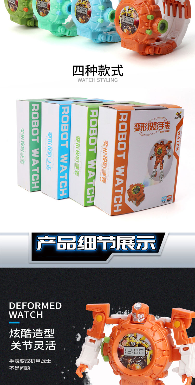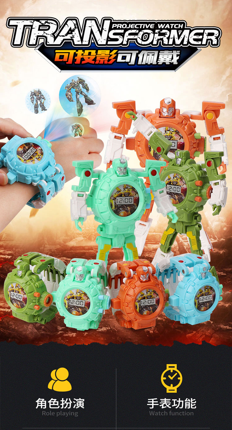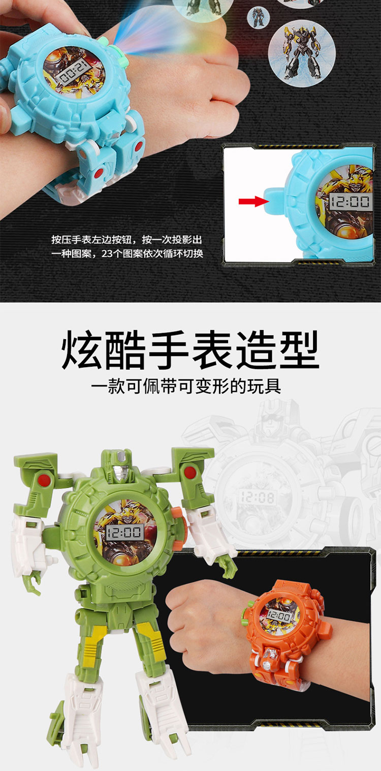 大得儿童卡通变形玩具金刚电子手表幼儿园宝宝23投影变身机器人玩具