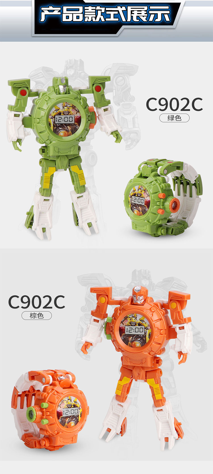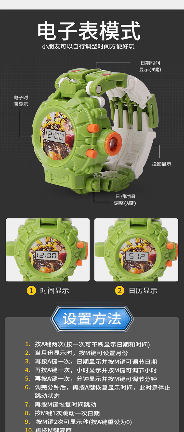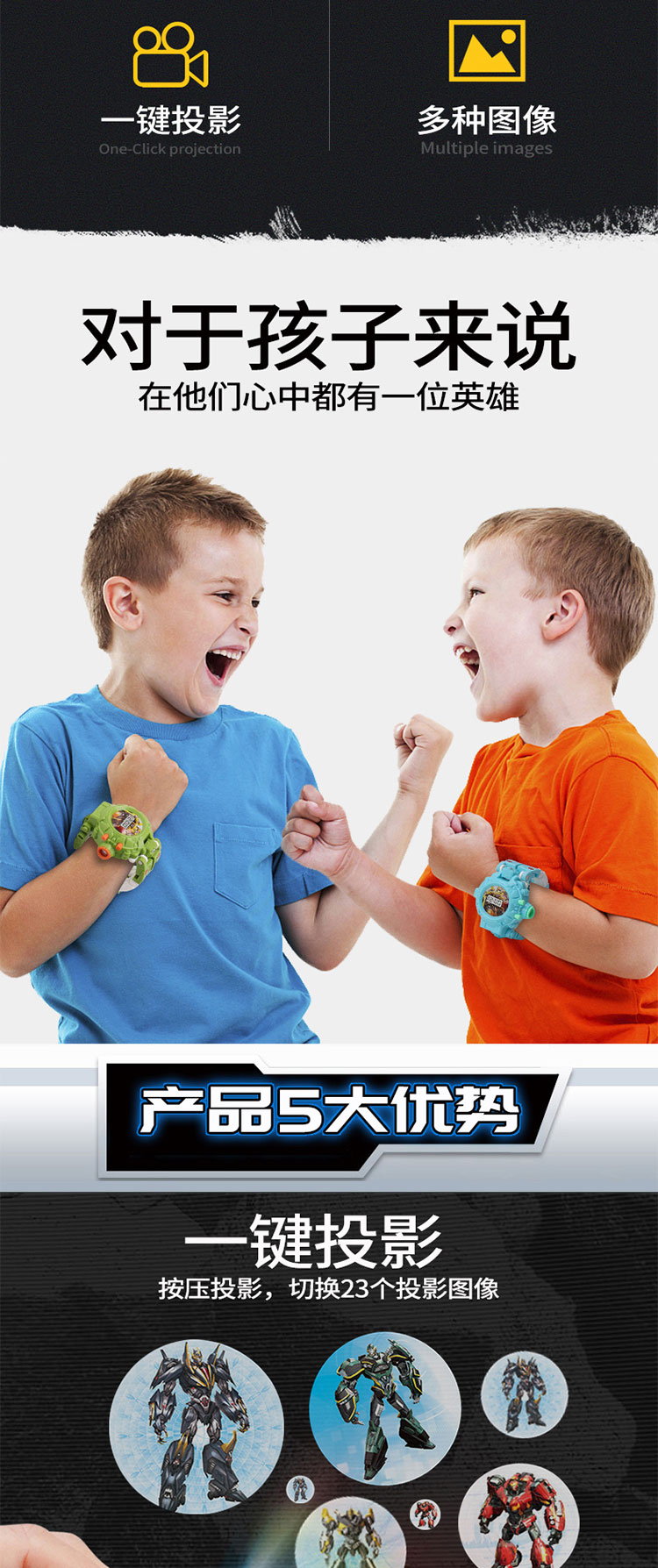 大得儿童卡通变形玩具金刚电子手表幼儿园宝宝23投影变身机器人玩具