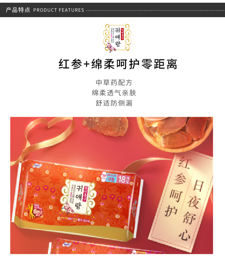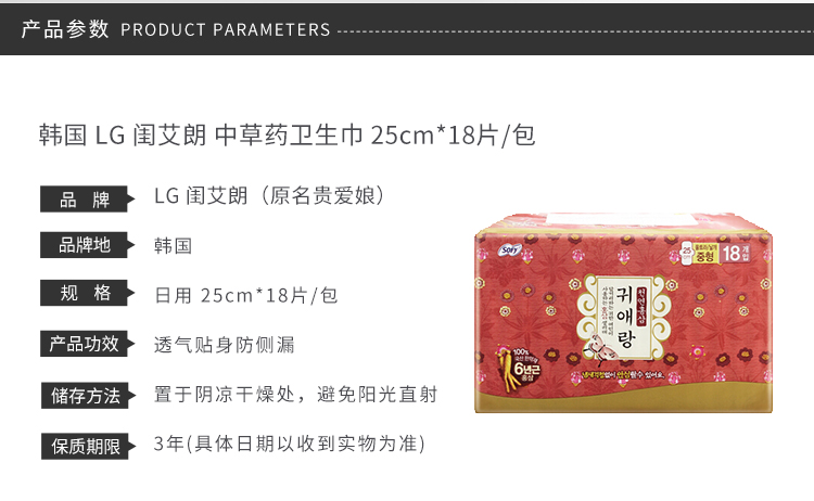 韩国贵爱娘中草药无荧光剂卫生巾 25cm18片