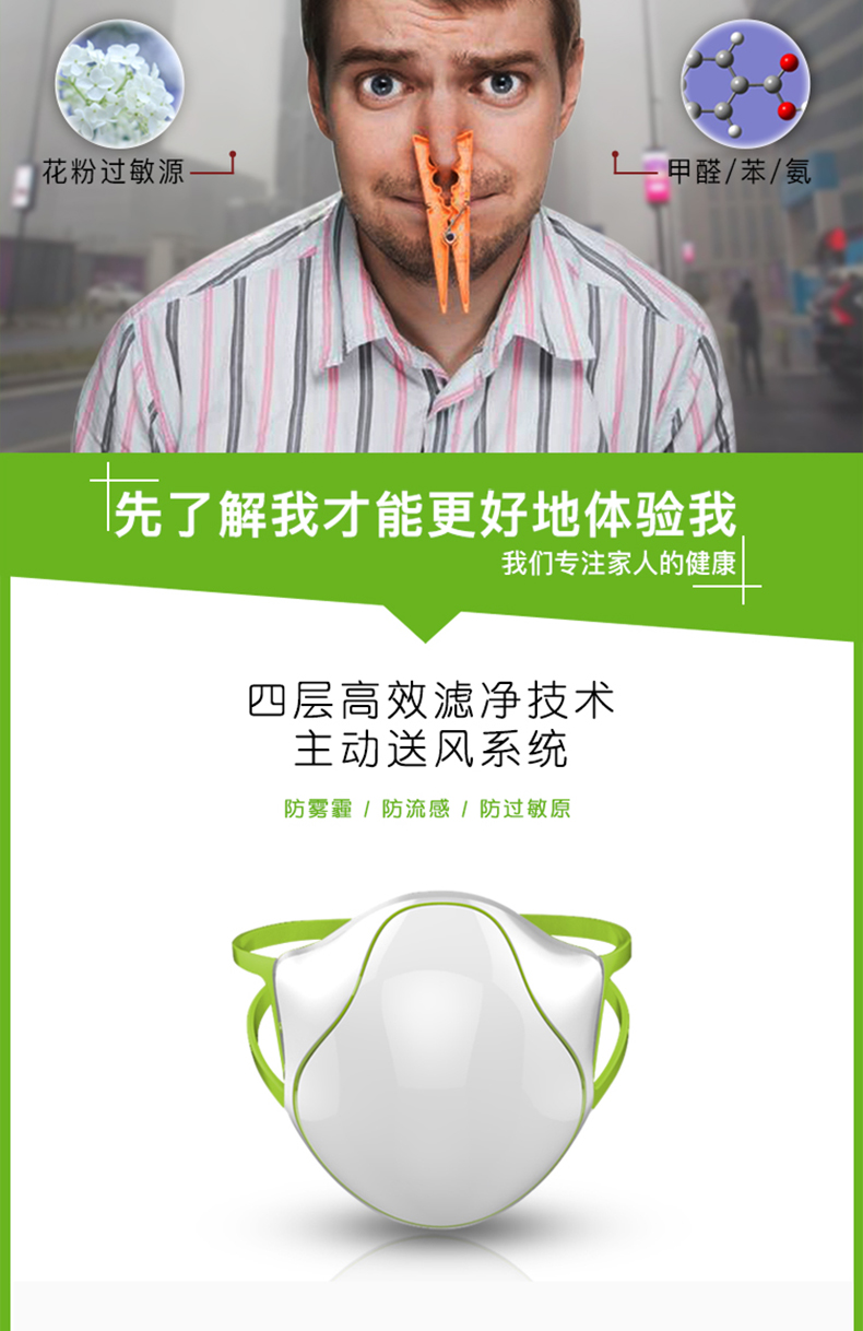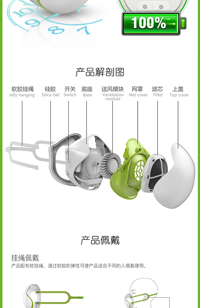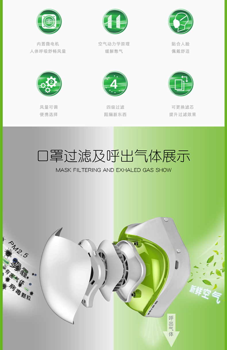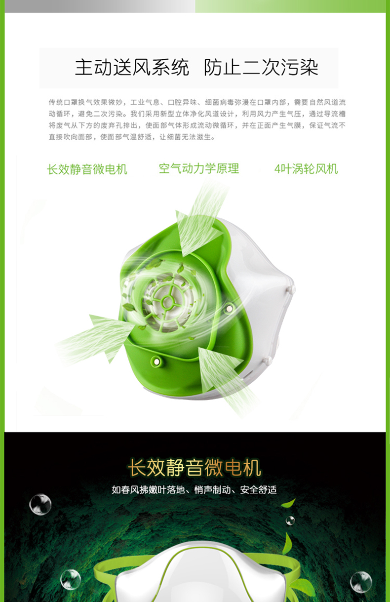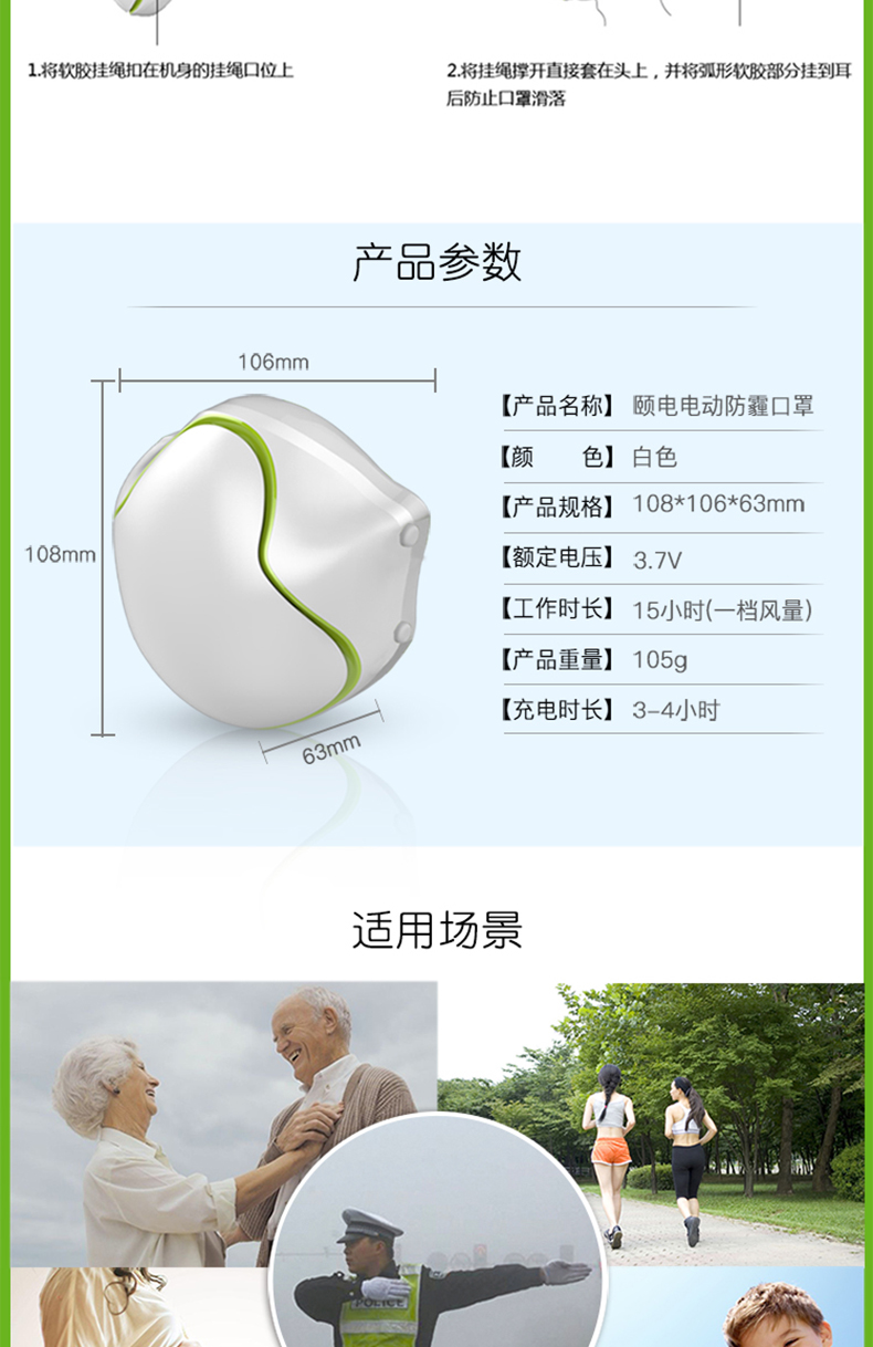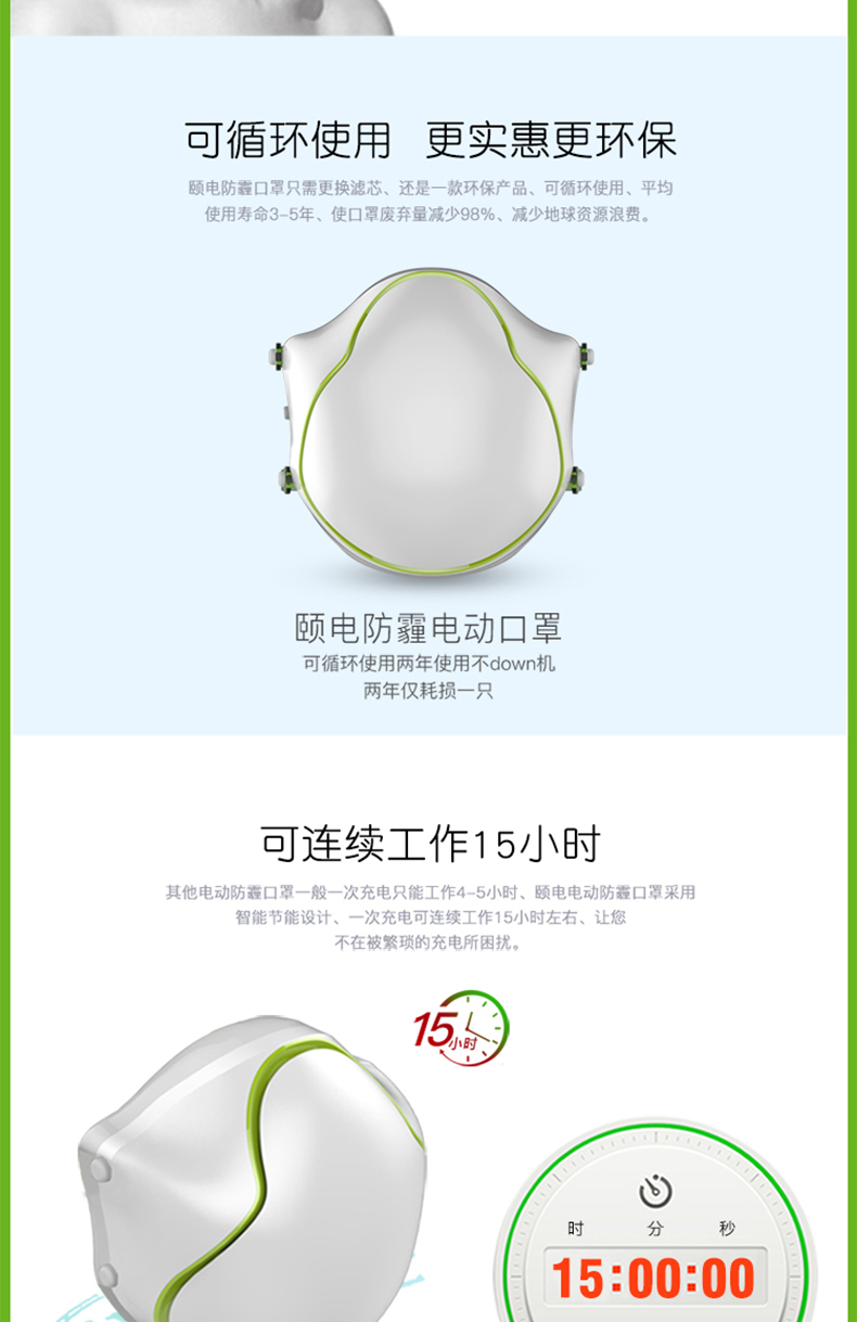 中国 颐電 电动口罩 智能防飞沫 防病菌防尘自动送风 净化空气 AD-4105 白色