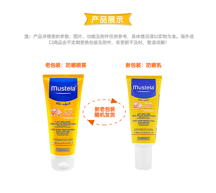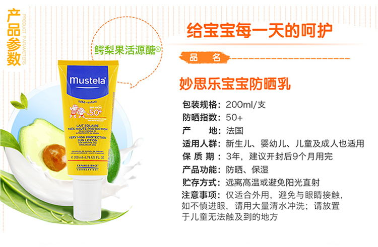 【荷兰直邮】Mustela妙思乐法国进口宝宝防晒乳SPF50+ 不含酒精200ml