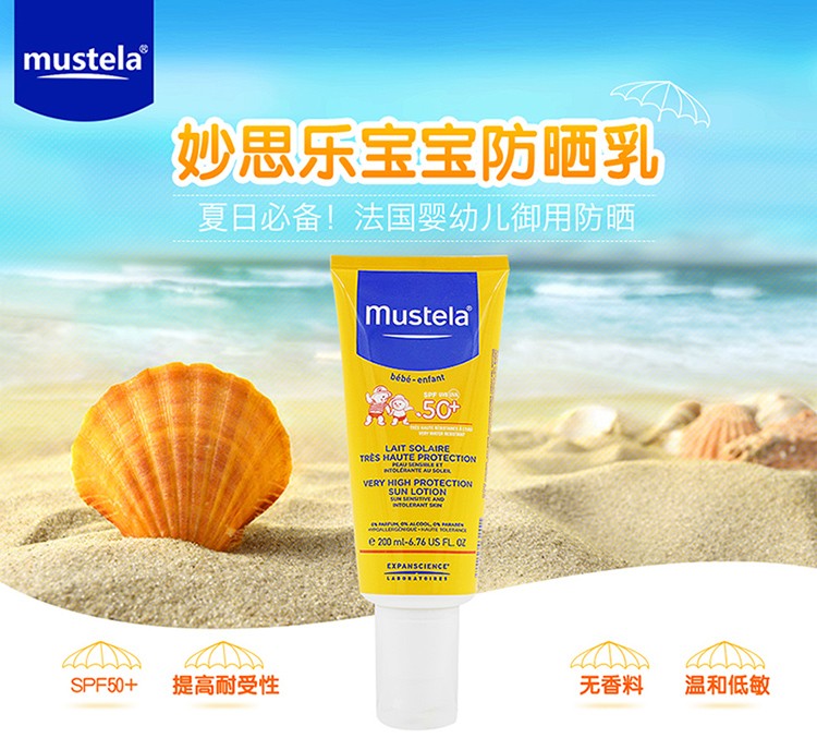 您所在的位置:首页 > 母婴用品  > 洗护用品 > 驱蚊防晒  > 【荷兰直邮】Mustela妙思乐法国进口宝宝防晒乳SPF50+ 不含酒精200ml