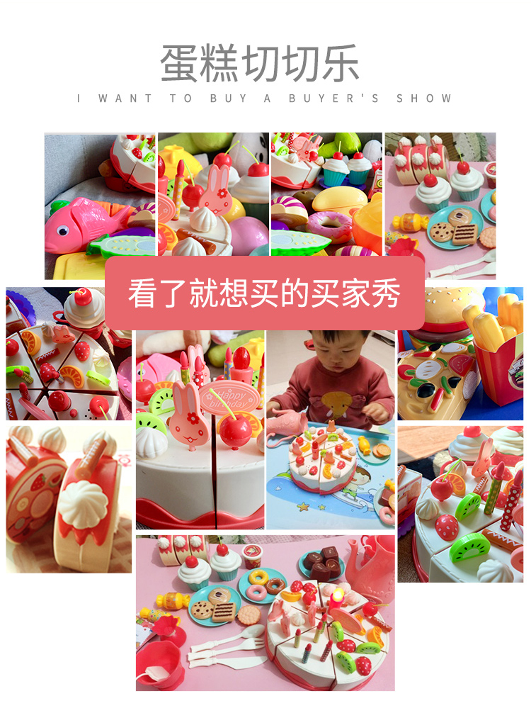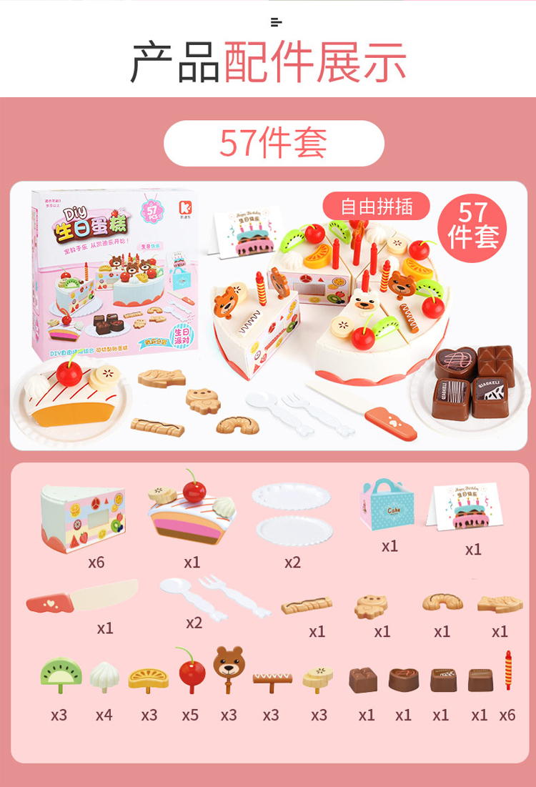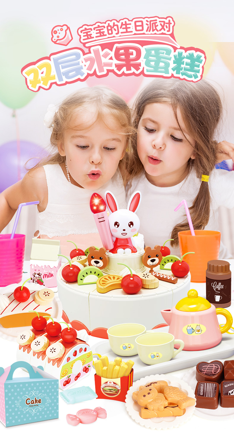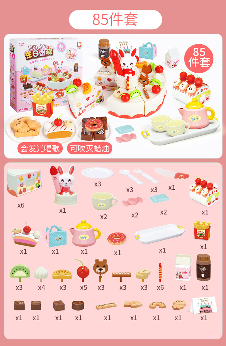 怀恩 可切生日蛋糕水果蔬菜玩具儿童套装组合切切乐女孩男孩过家家厨房 会发光 会唱歌的蛋糕 红色(85件套)