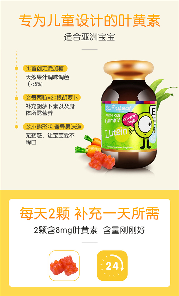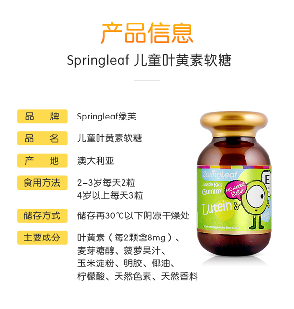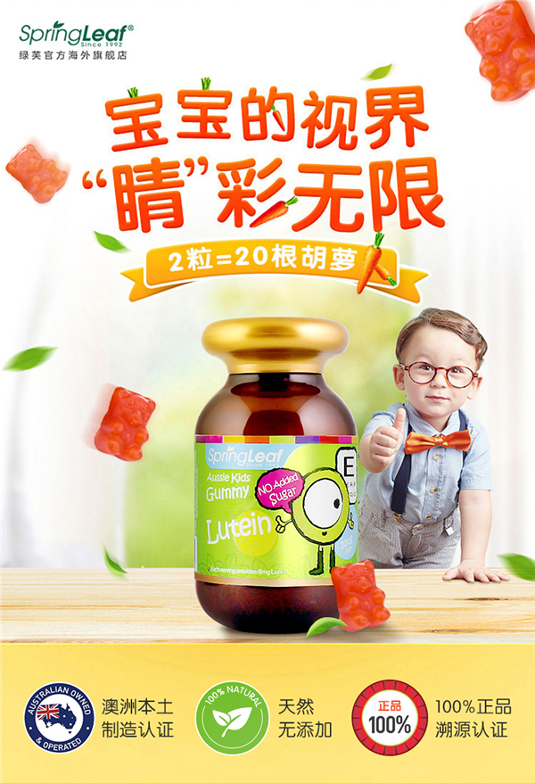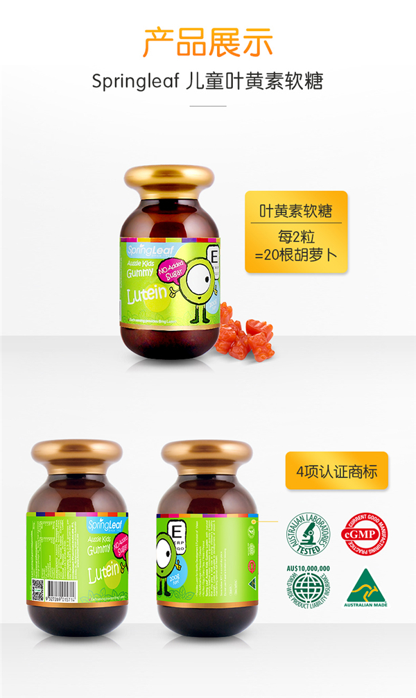 澳洲SpringLeaf绿芙叶黄素保健儿童软糖200g