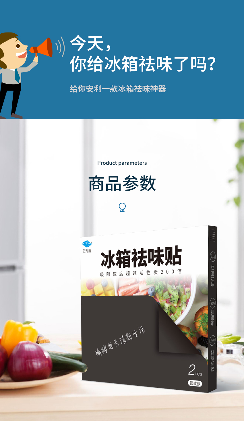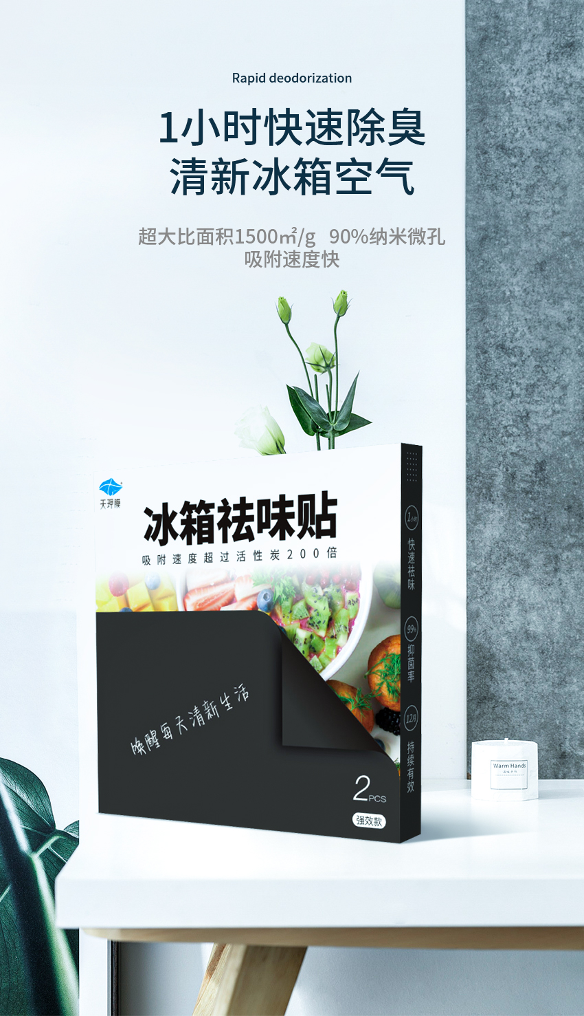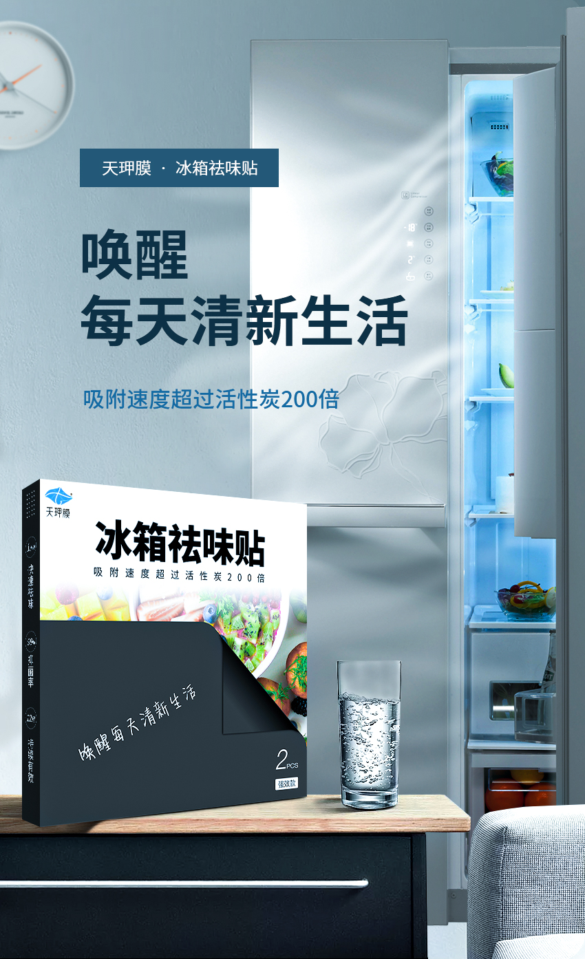 天玾膜祛味贴 异味终结者 冰箱衣柜除臭抑菌 2片盒 加赠希水随身装1瓶