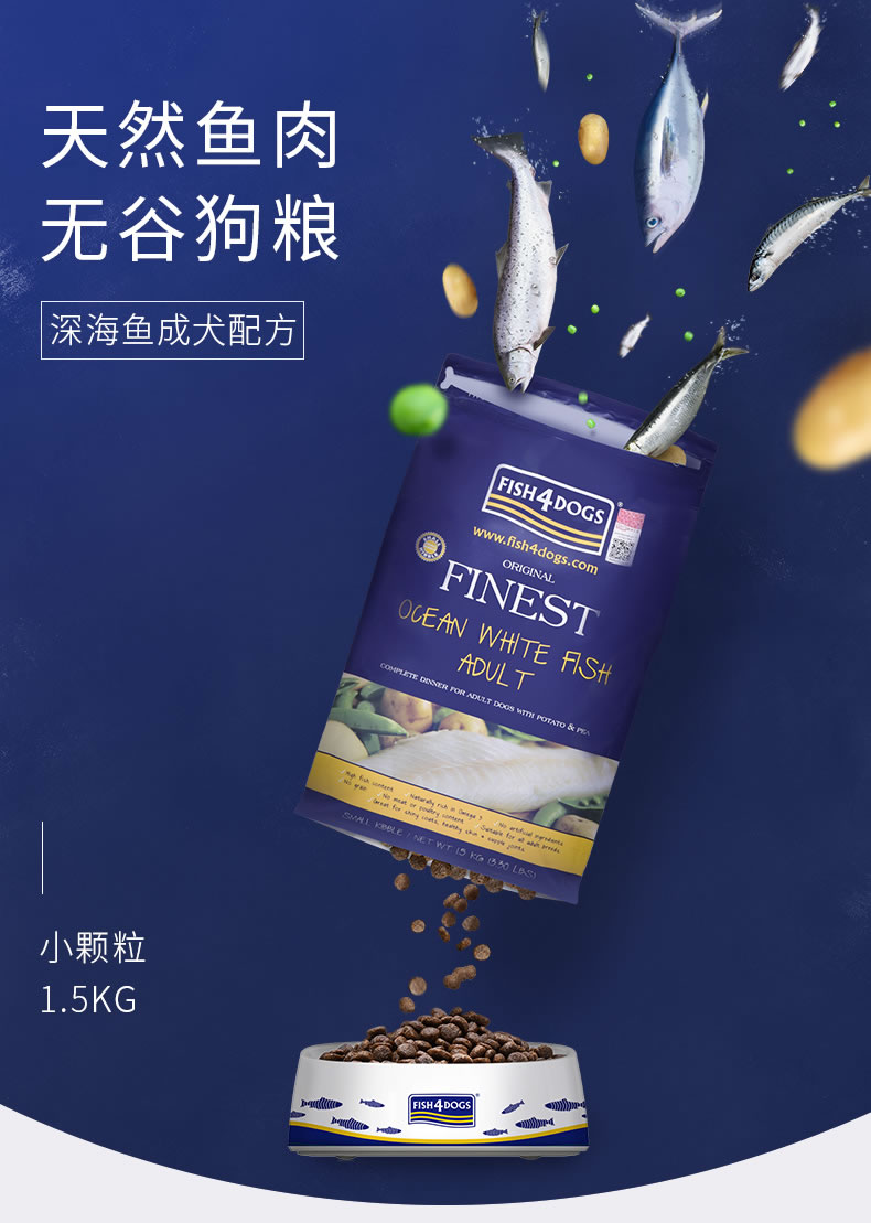 海洋之星天然无谷抗敏感深海鱼成犬美毛配方(小颗粒)1.5KG