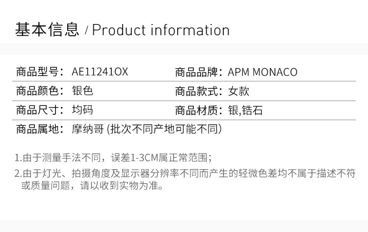 摩纳哥APM MONACO 银色耳环 AE11241OX