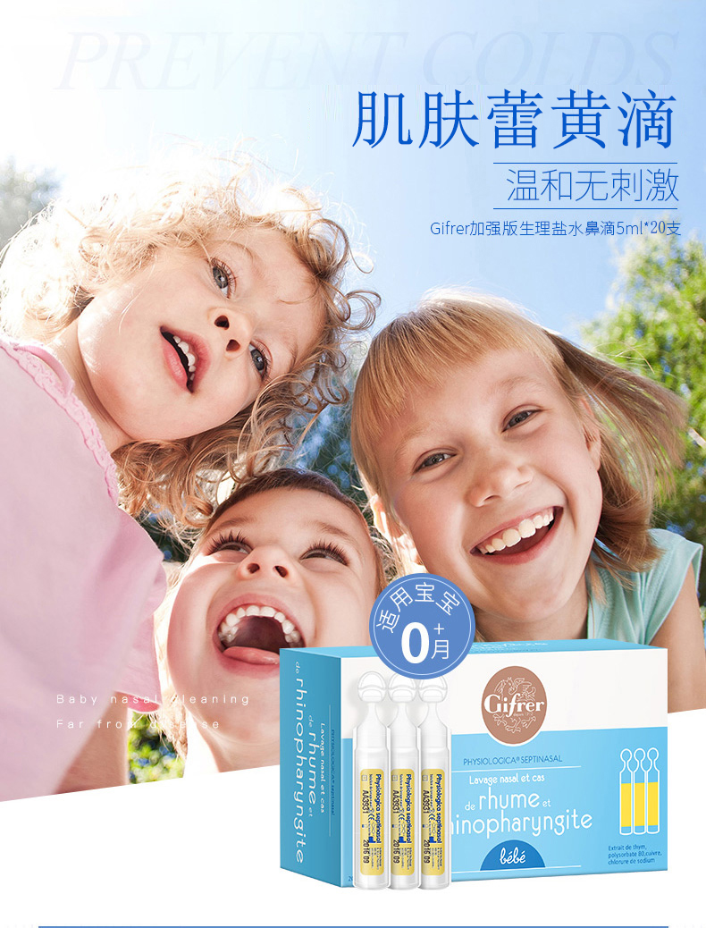法国肌肤蕾Gifrer肌肤蕾宝宝鼻塞洗液通鼻除涕感冒好得快黄滴20*5ml