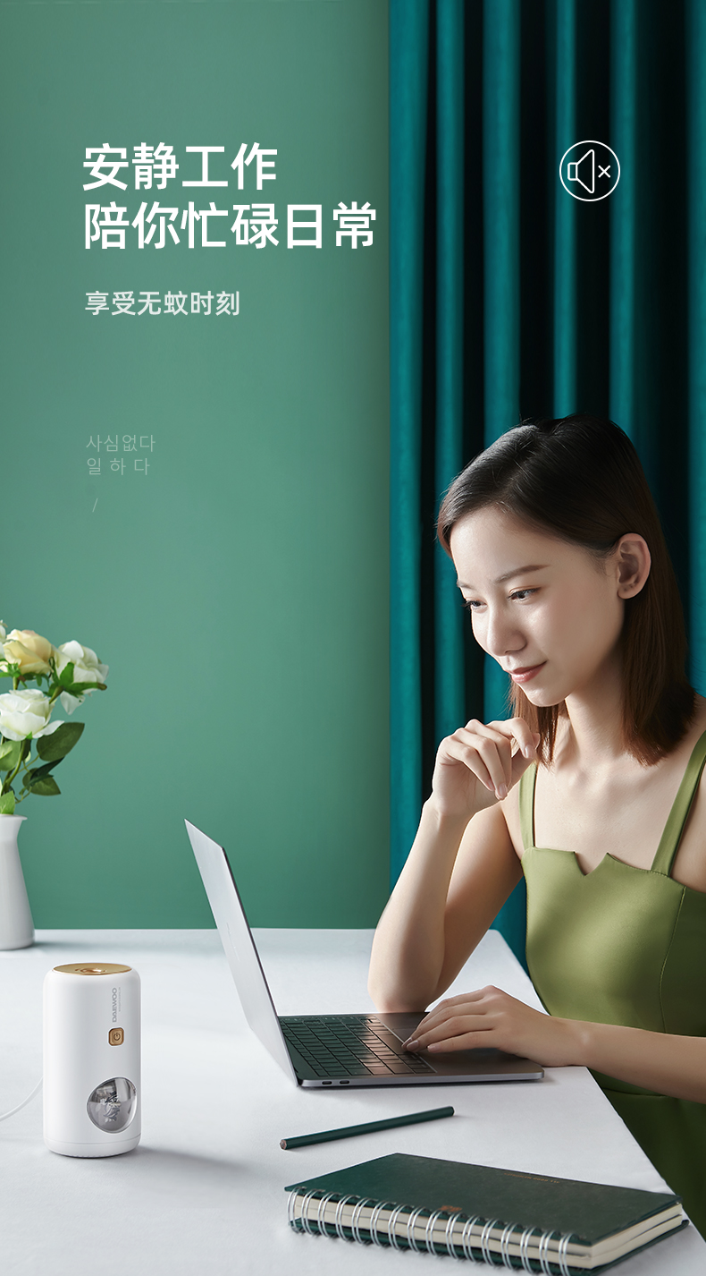 韩国DAEWOO大宇usb便携驱蚊小夜灯湖水绿(含52ml溶液1瓶,孕婴适用)