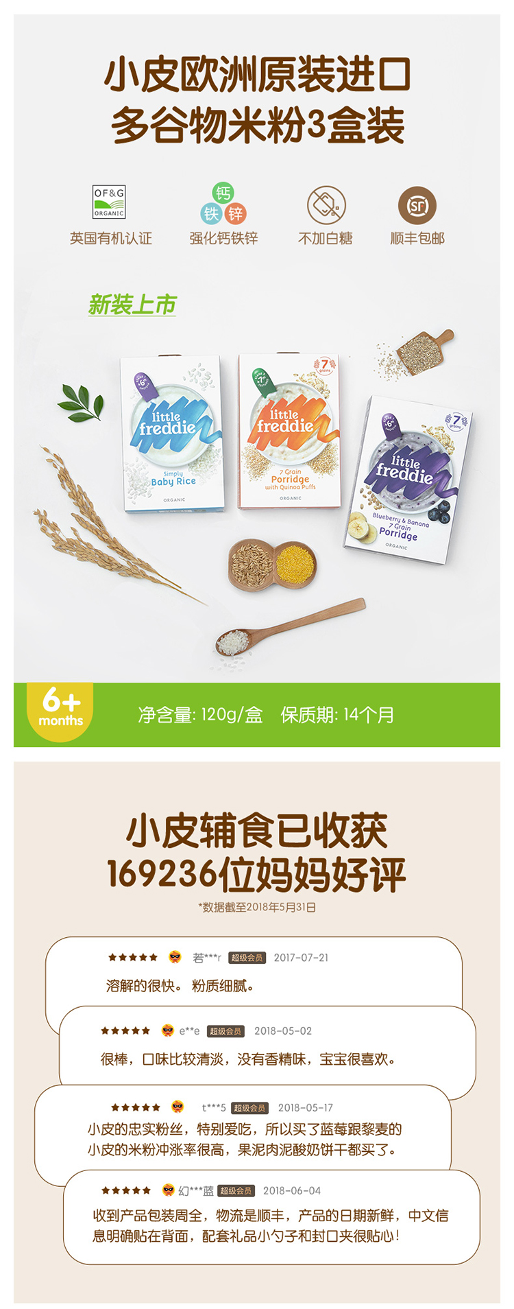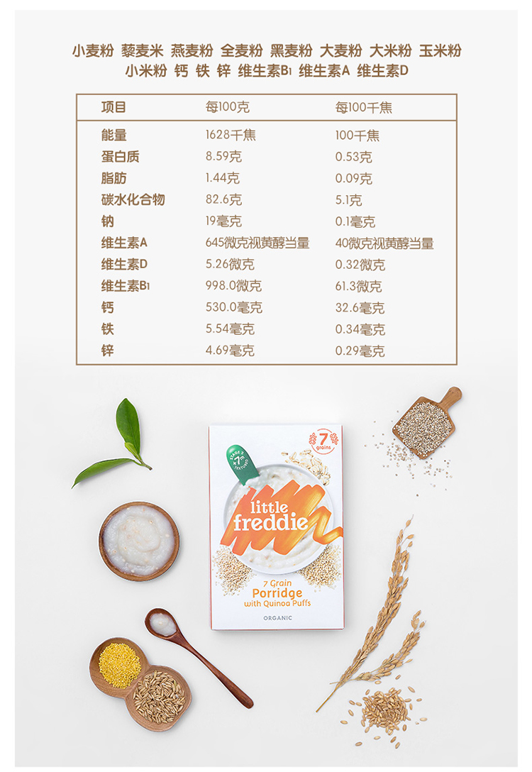 LittleFreddie小皮 含钙铁锌辅食 有机藜麦多种谷物粉