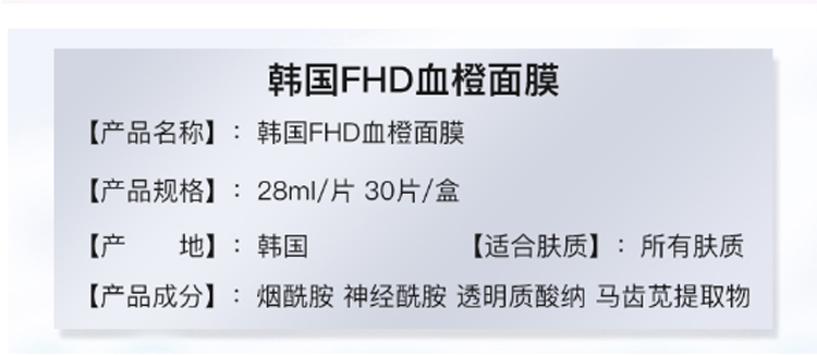 您所在的位置:首页 > 美妆护肤  > 面部护肤 > 面膜  > 【韩国直邮】FHD血橙面膜30片/盒