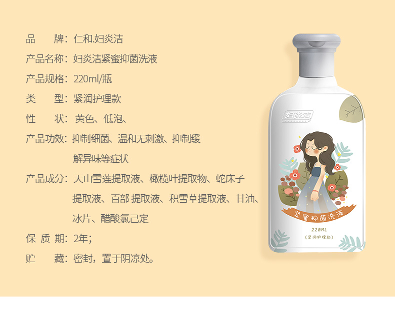 妇炎洁牌紧蜜抑菌洗液220ML/瓶