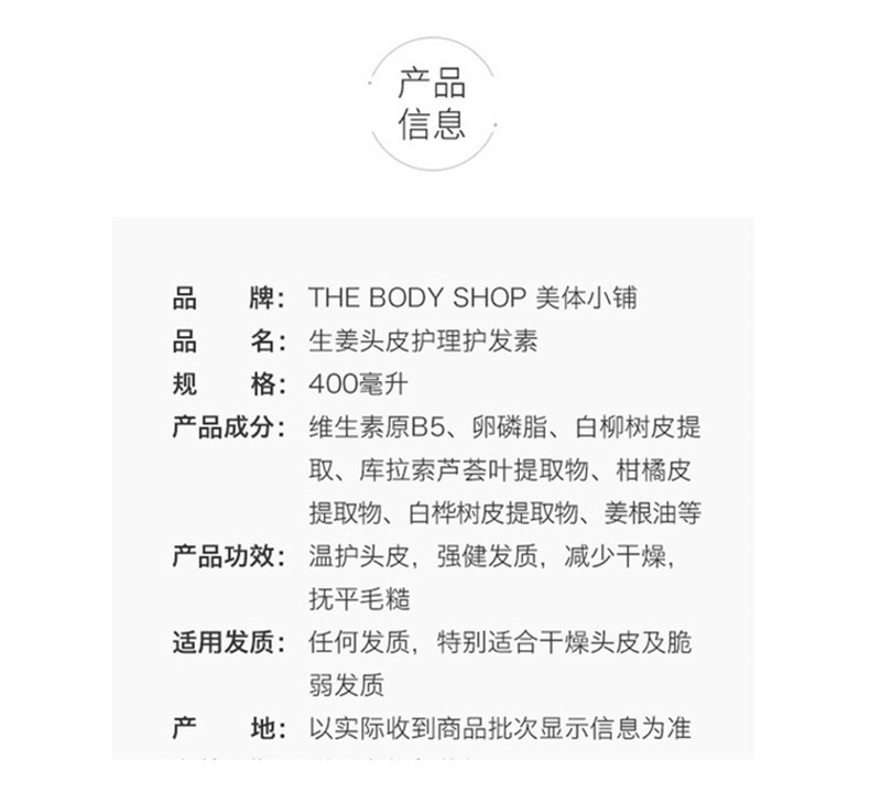 THE BODY SHOP/美体小铺 生姜头皮护理护发素 400ML