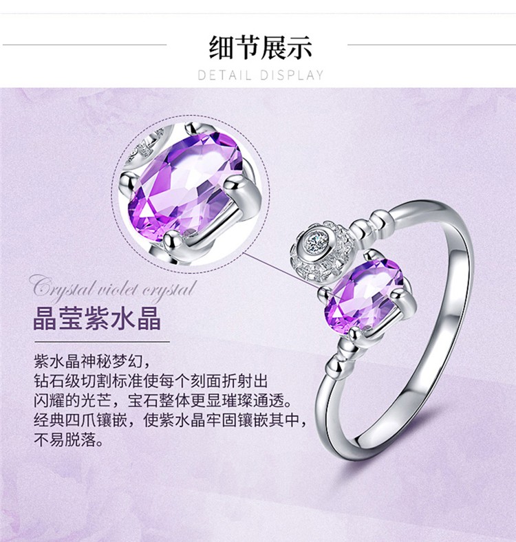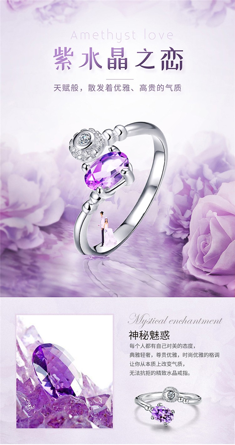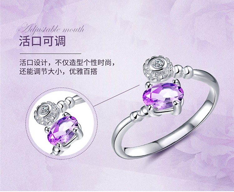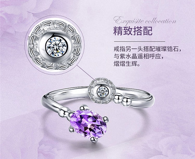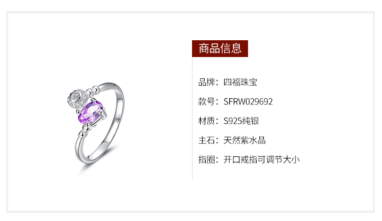 您所在的位置:首页 > 珠宝首饰  > 珠宝首饰 > 水晶玛瑙  > 四福珠宝 纯银天然紫水晶戒指时尚轻奢典雅女款戒指指环
