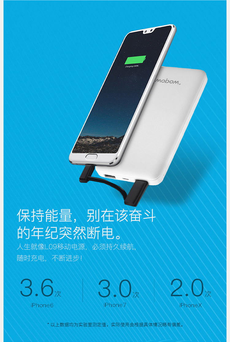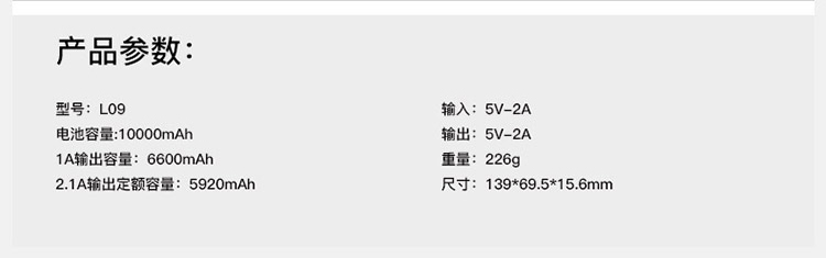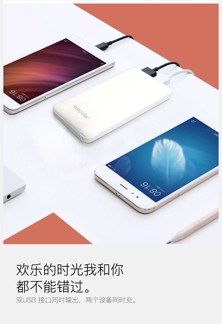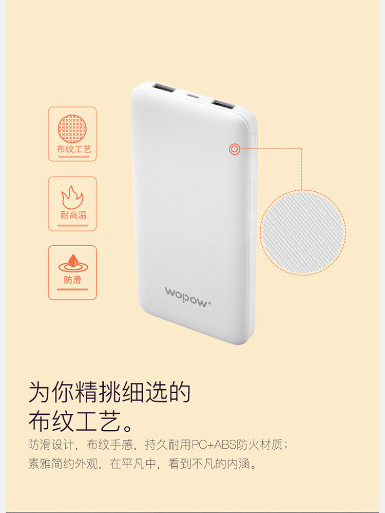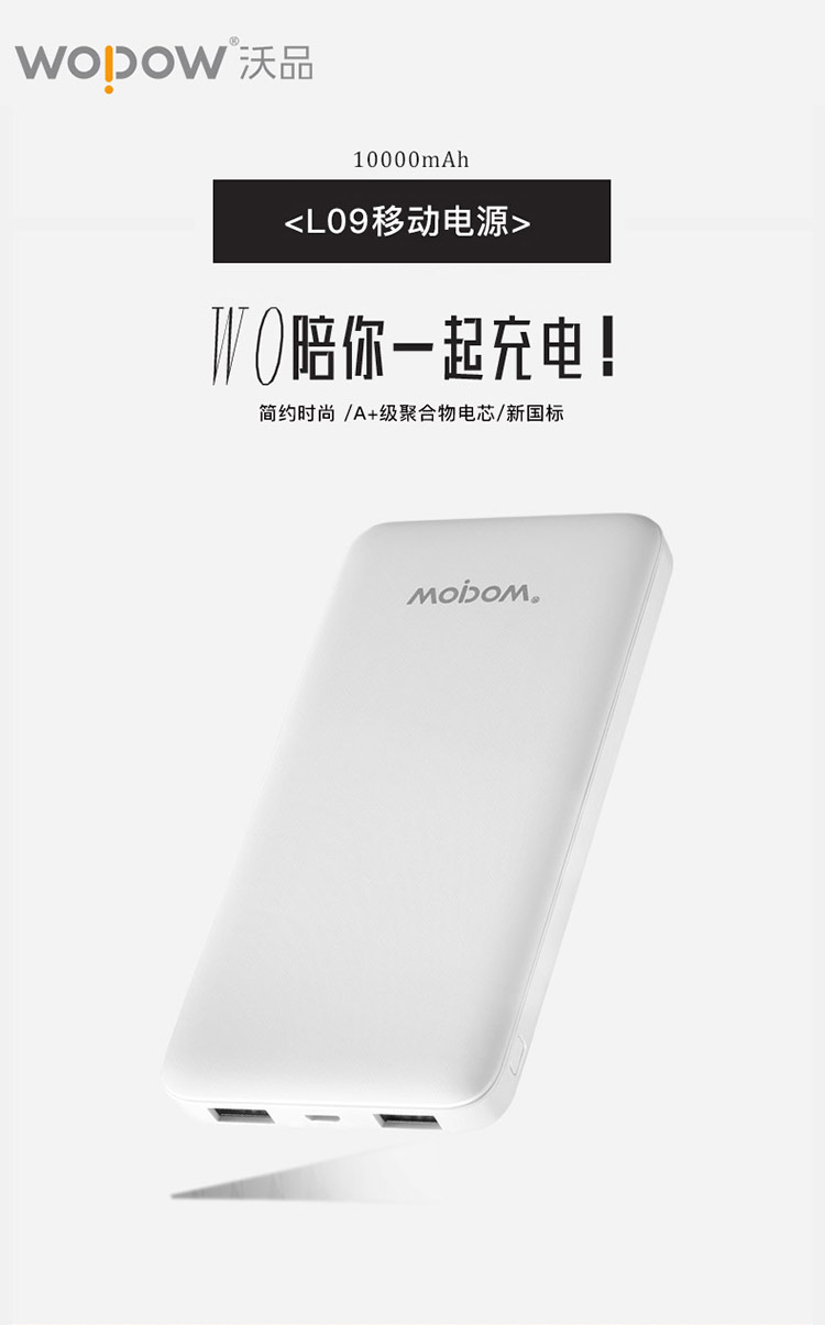 【授权商品】中国wopow/沃品 轻薄小巧移动电源充电宝 L09 白色